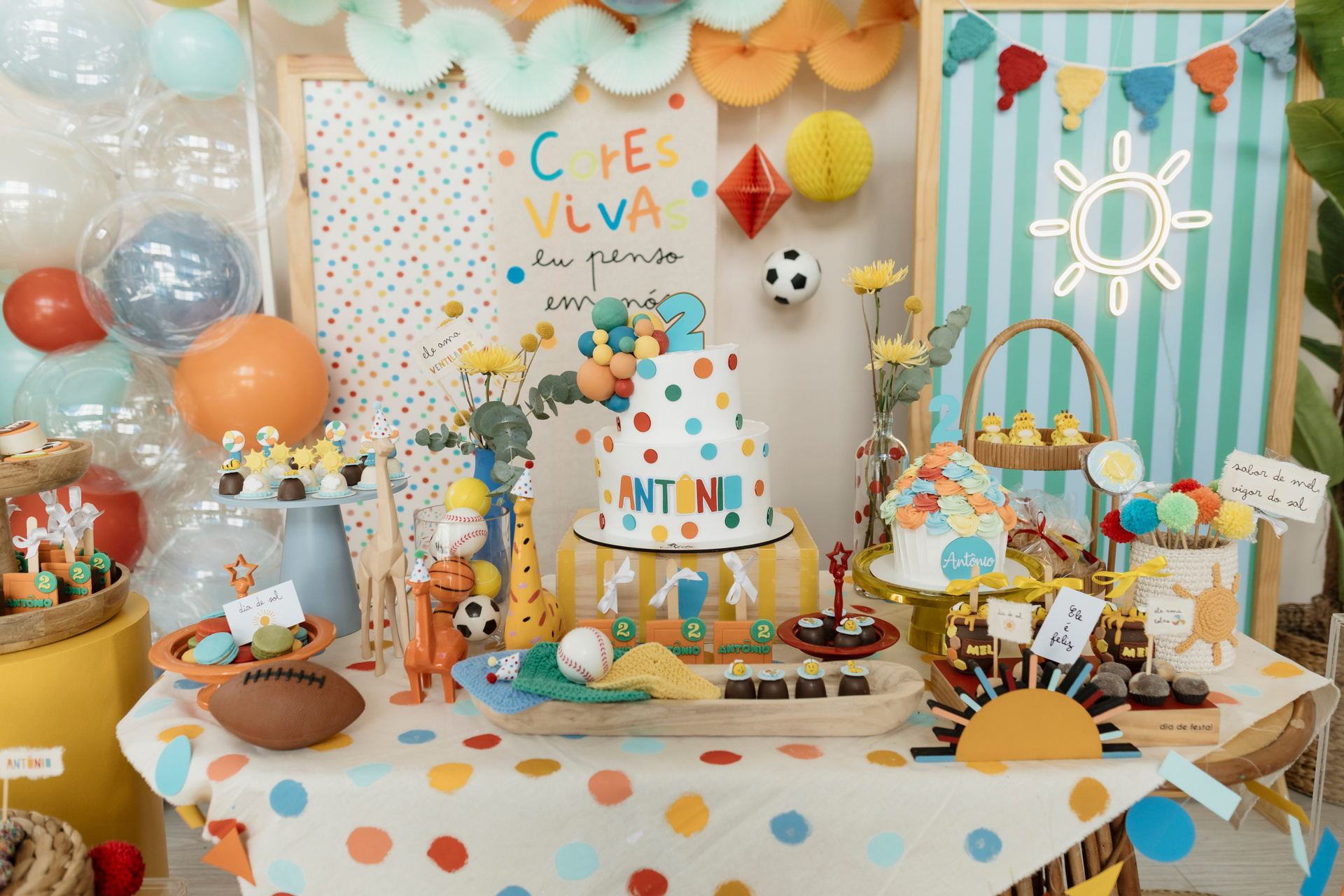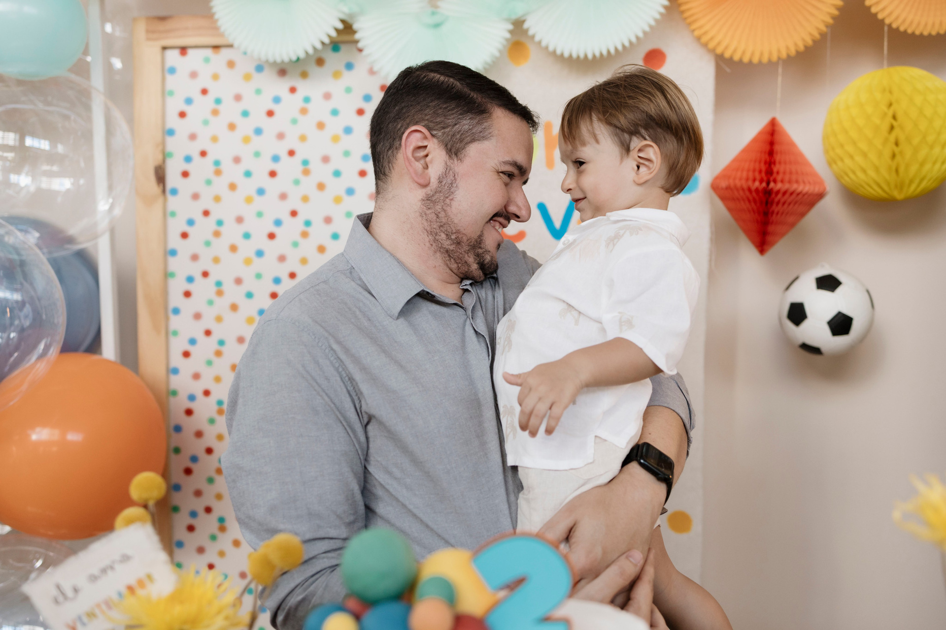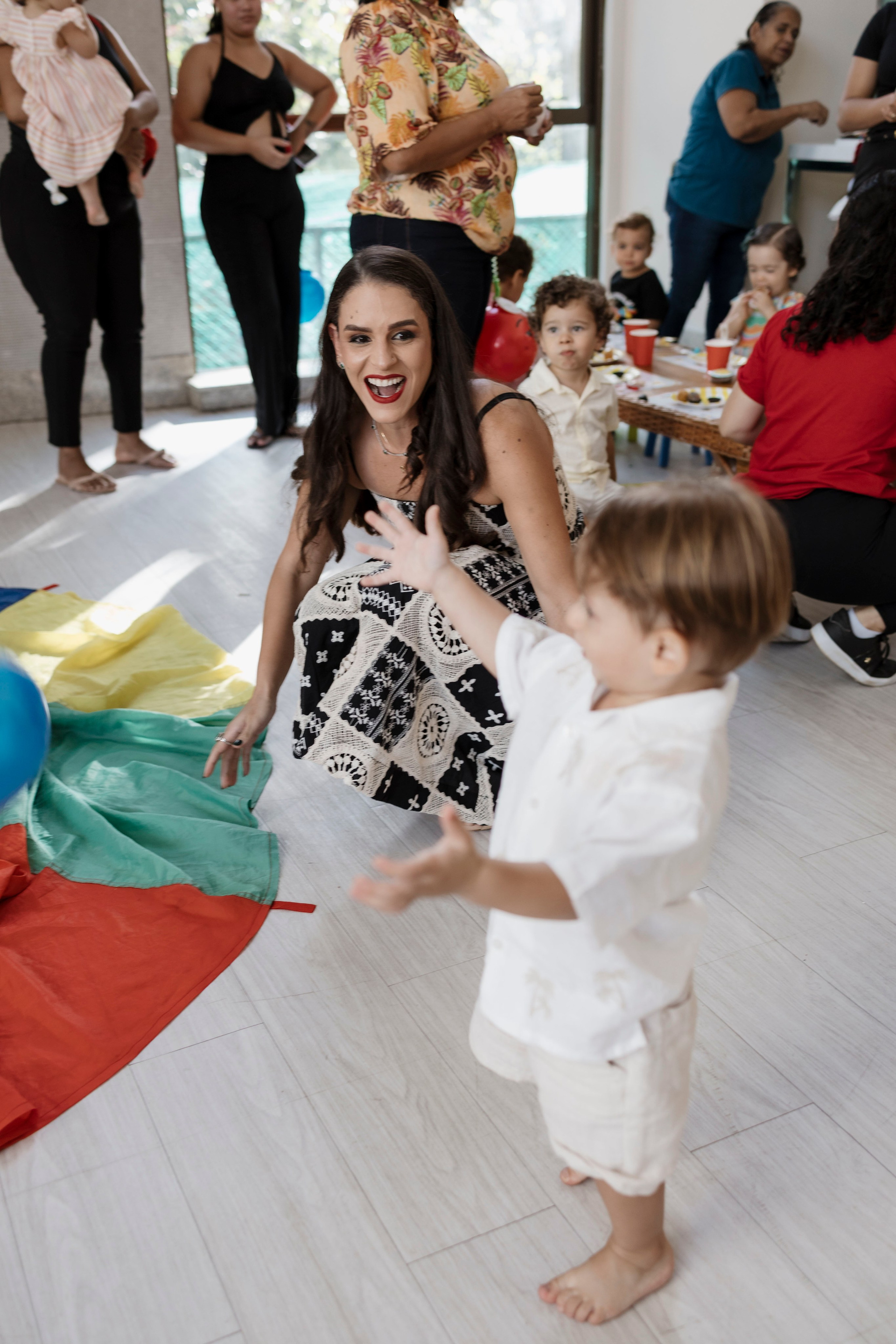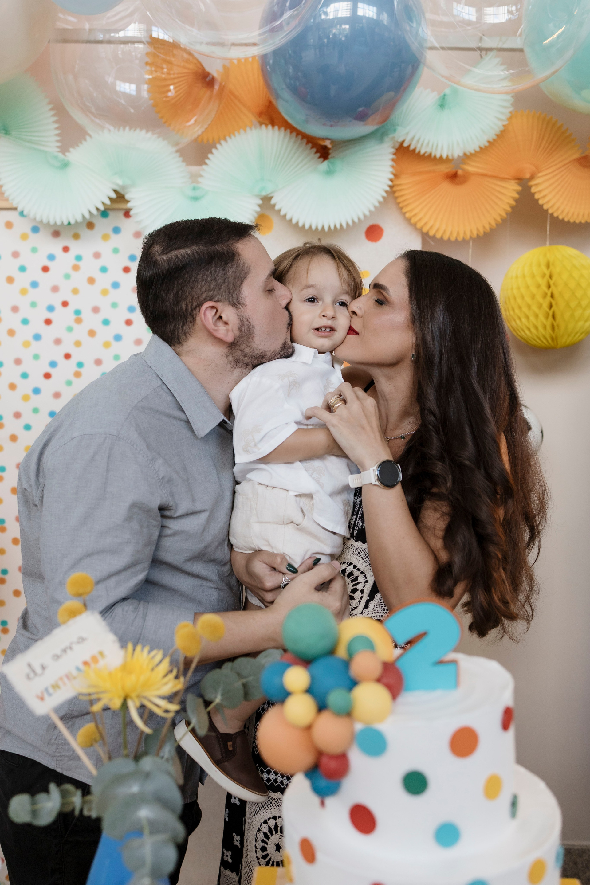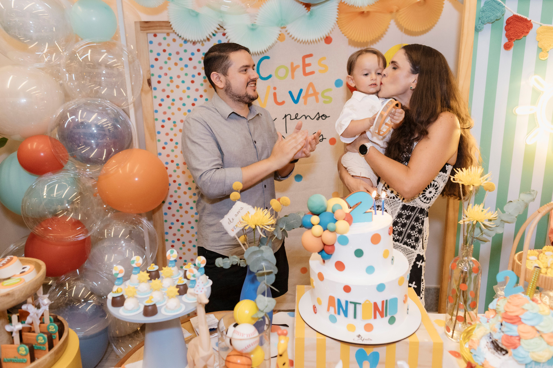 Tudo ali partia do que faz sentido para ele nessa fase: o movimento das bolas, o vento do ventilador, o sol, a curiosidade em descobrir o espaço e as pessoas ao redor. Uma festa pensada no tempo da criança, sem pressa e sem excessos.