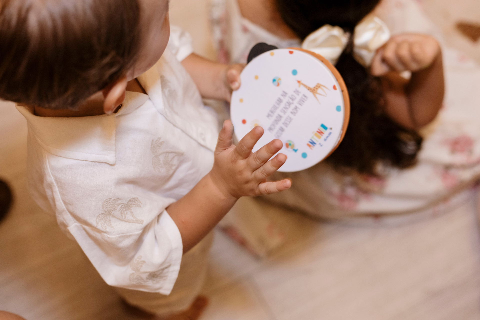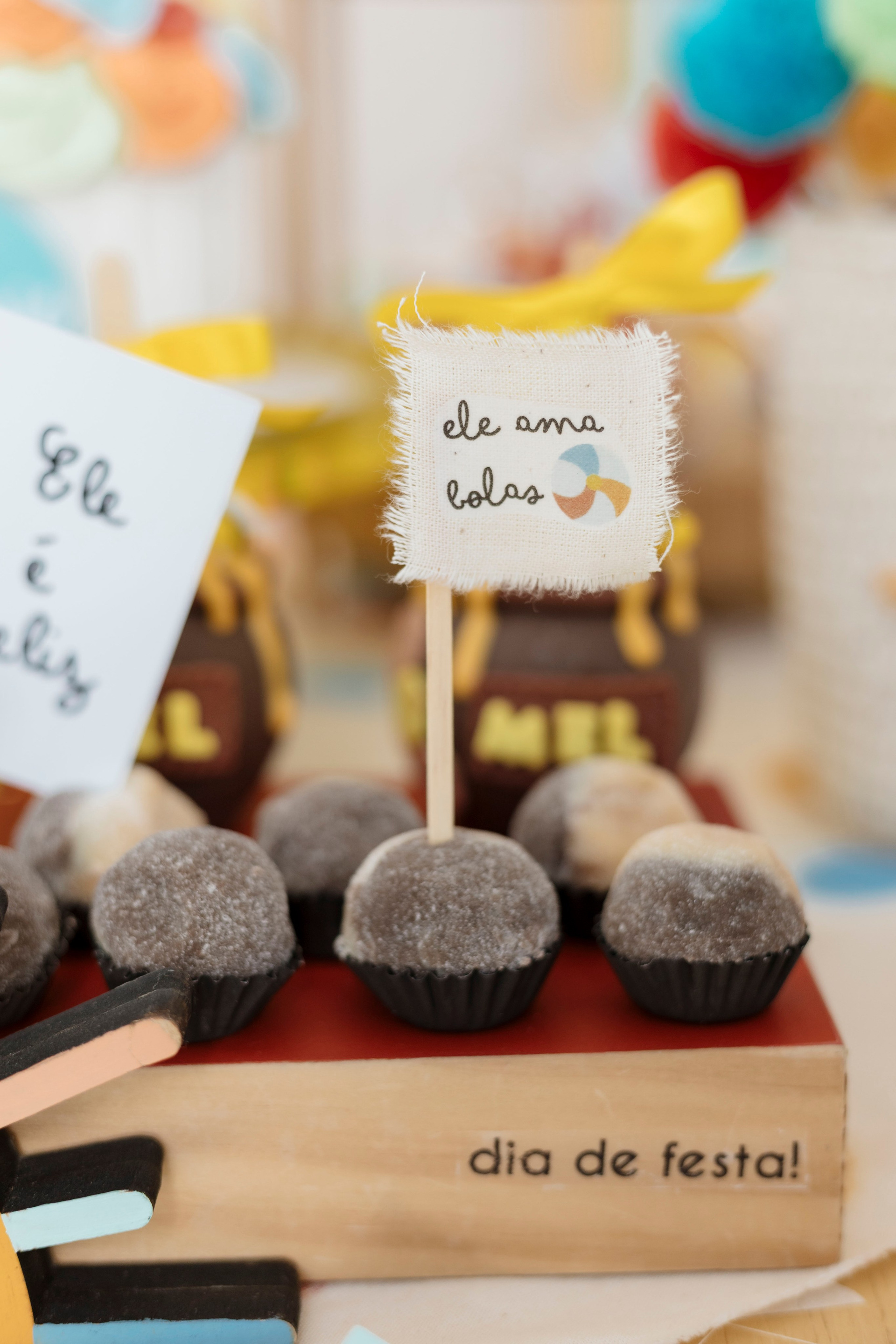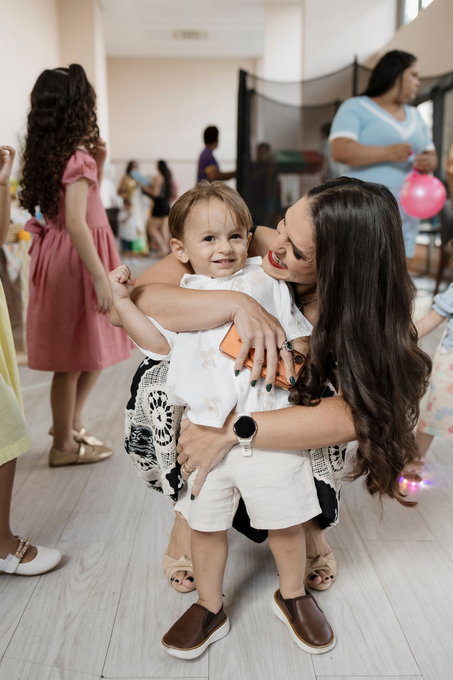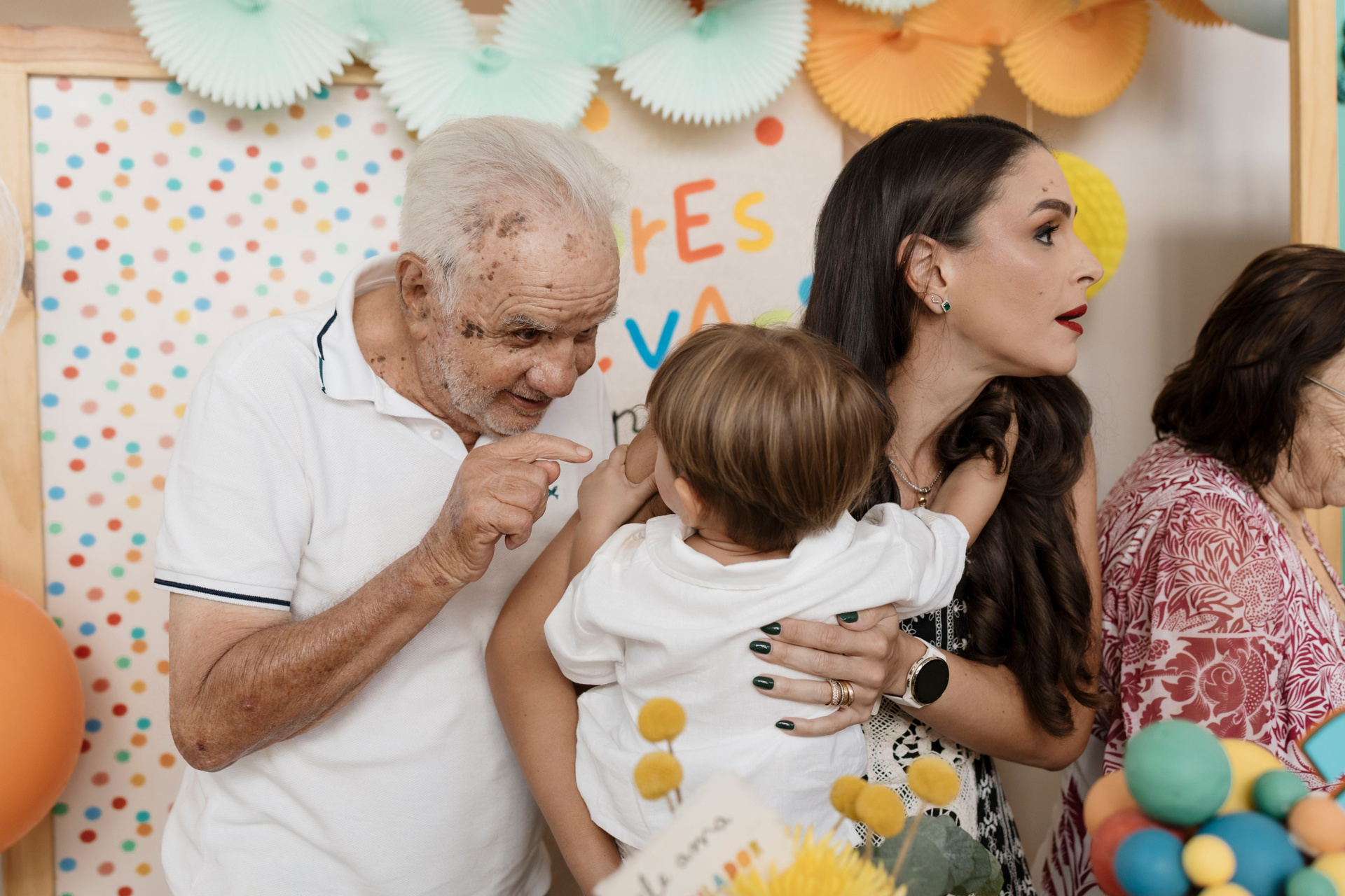 Tudo ali partia do que faz sentido para ele nessa fase: o movimento das bolas, o vento do ventilador, o sol, a curiosidade em descobrir o espaço e as pessoas ao redor. Uma festa pensada no tempo da criança, sem pressa e sem excessos.