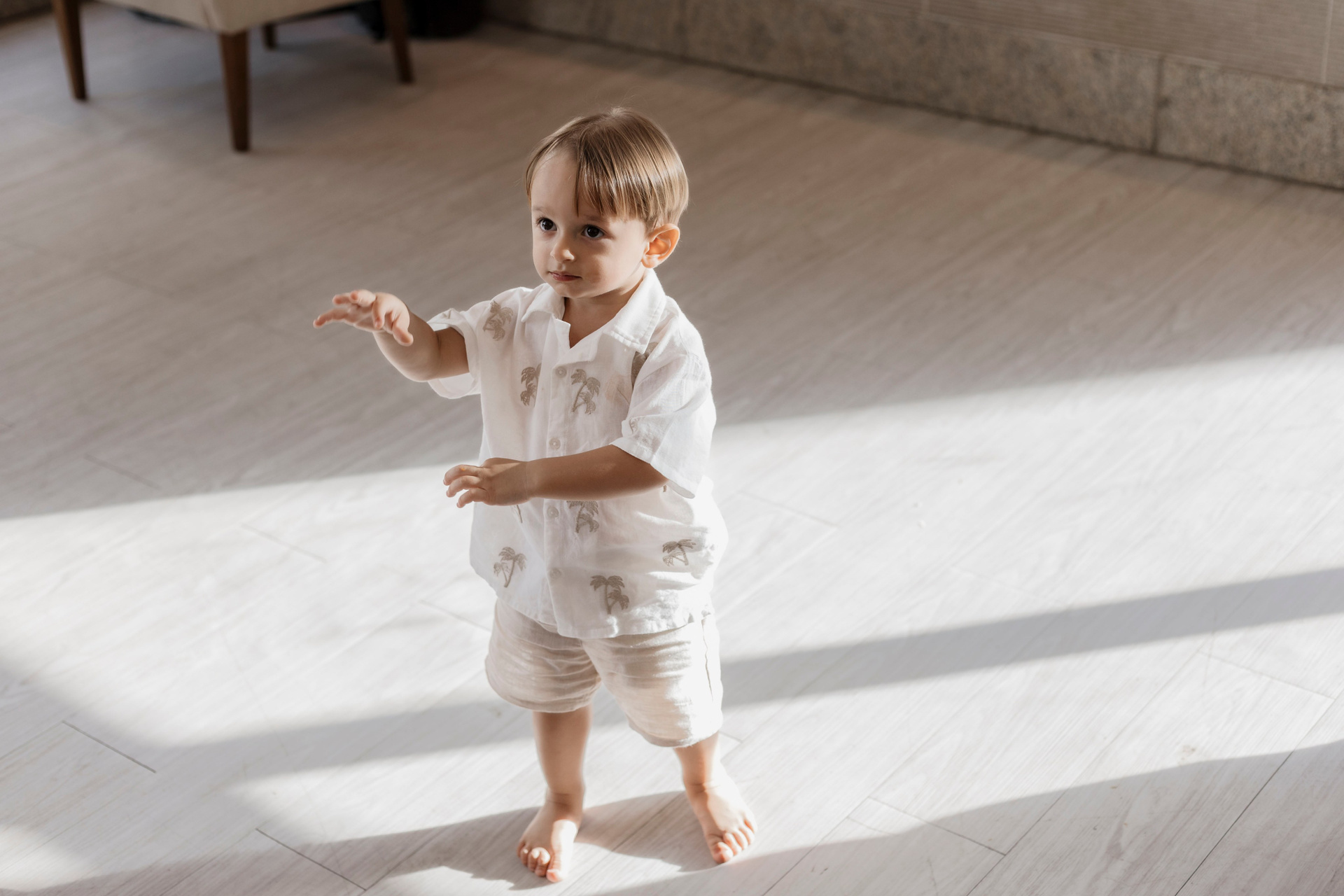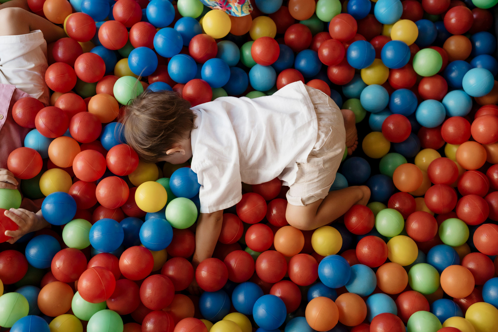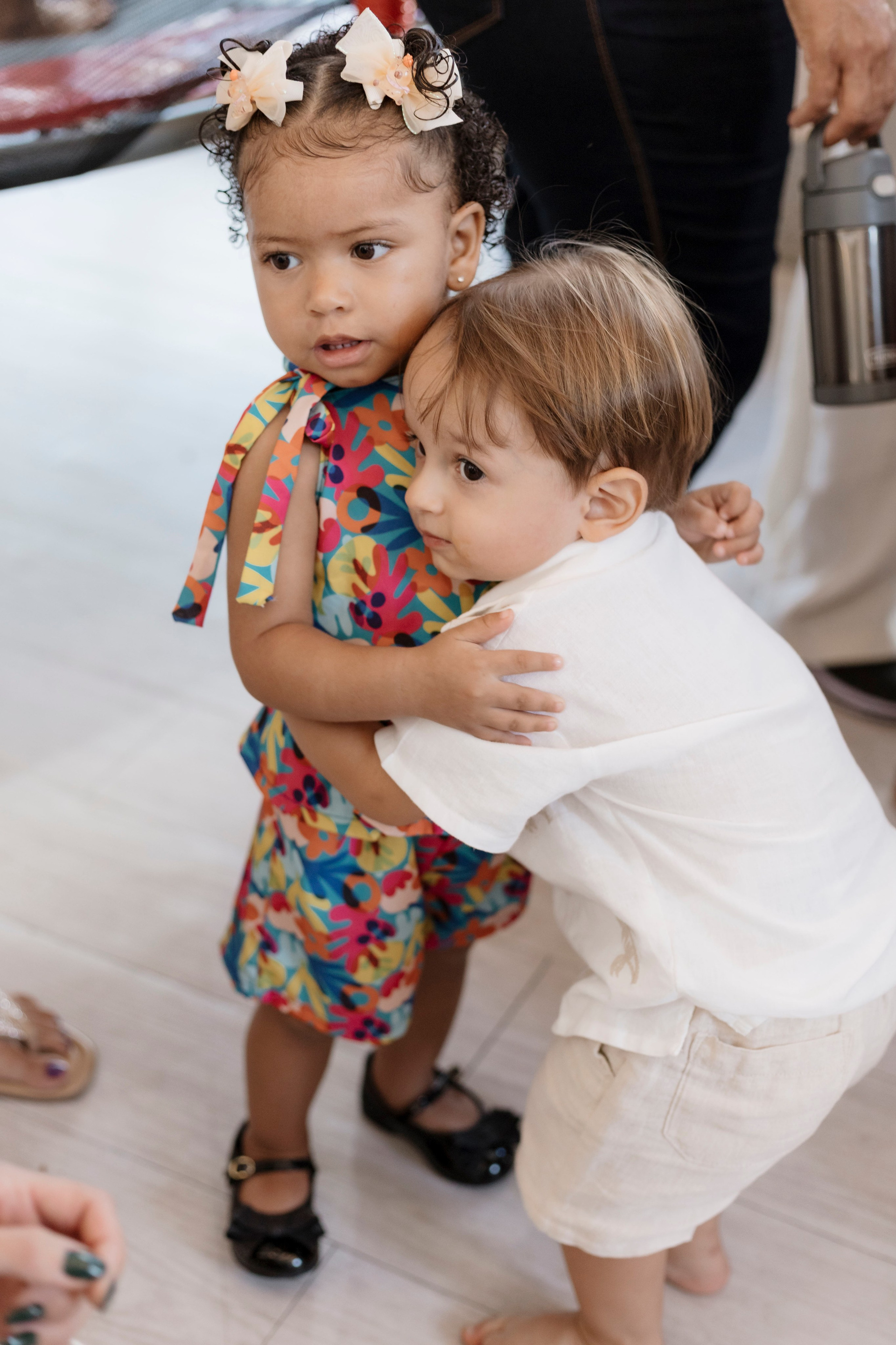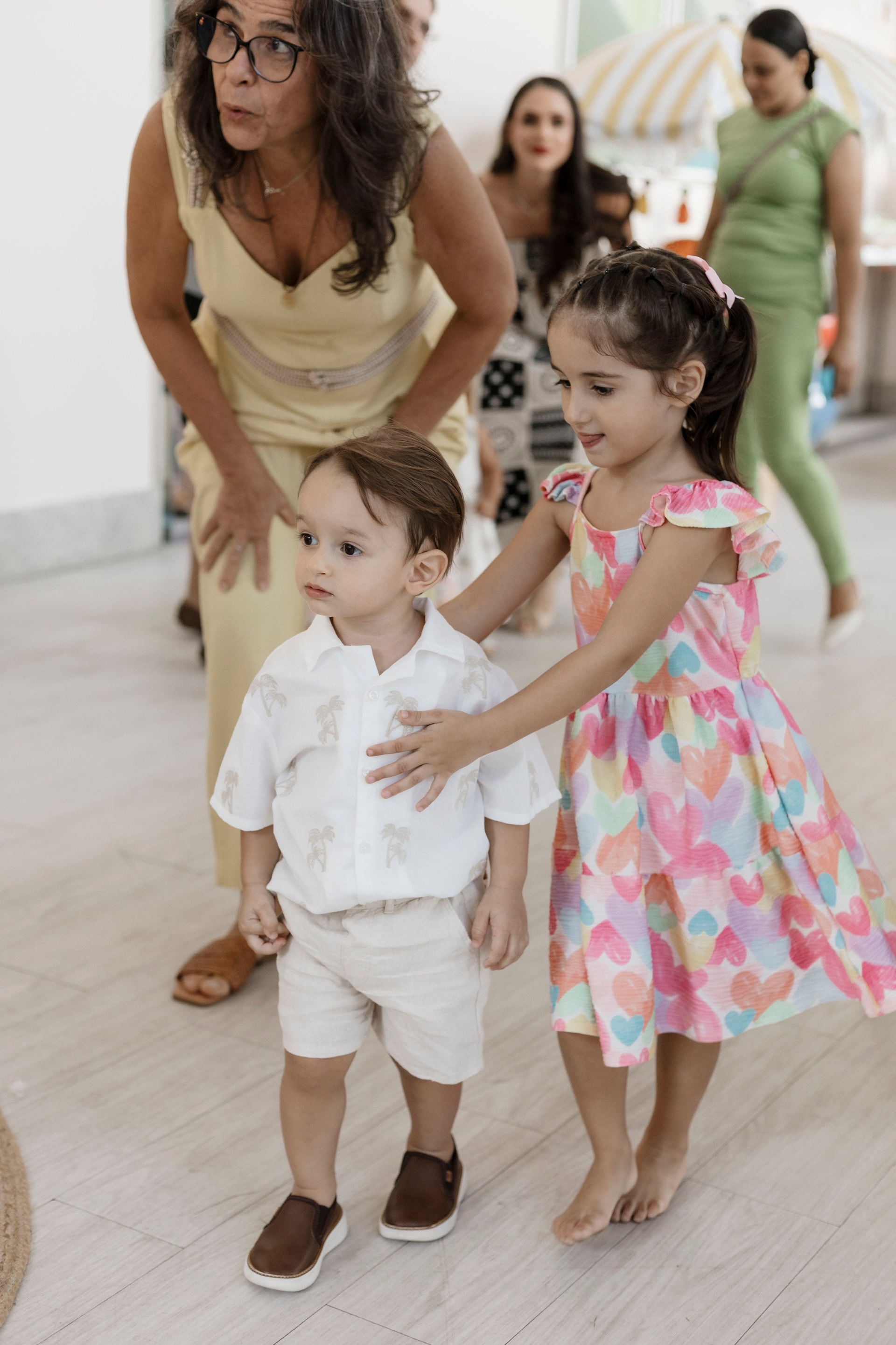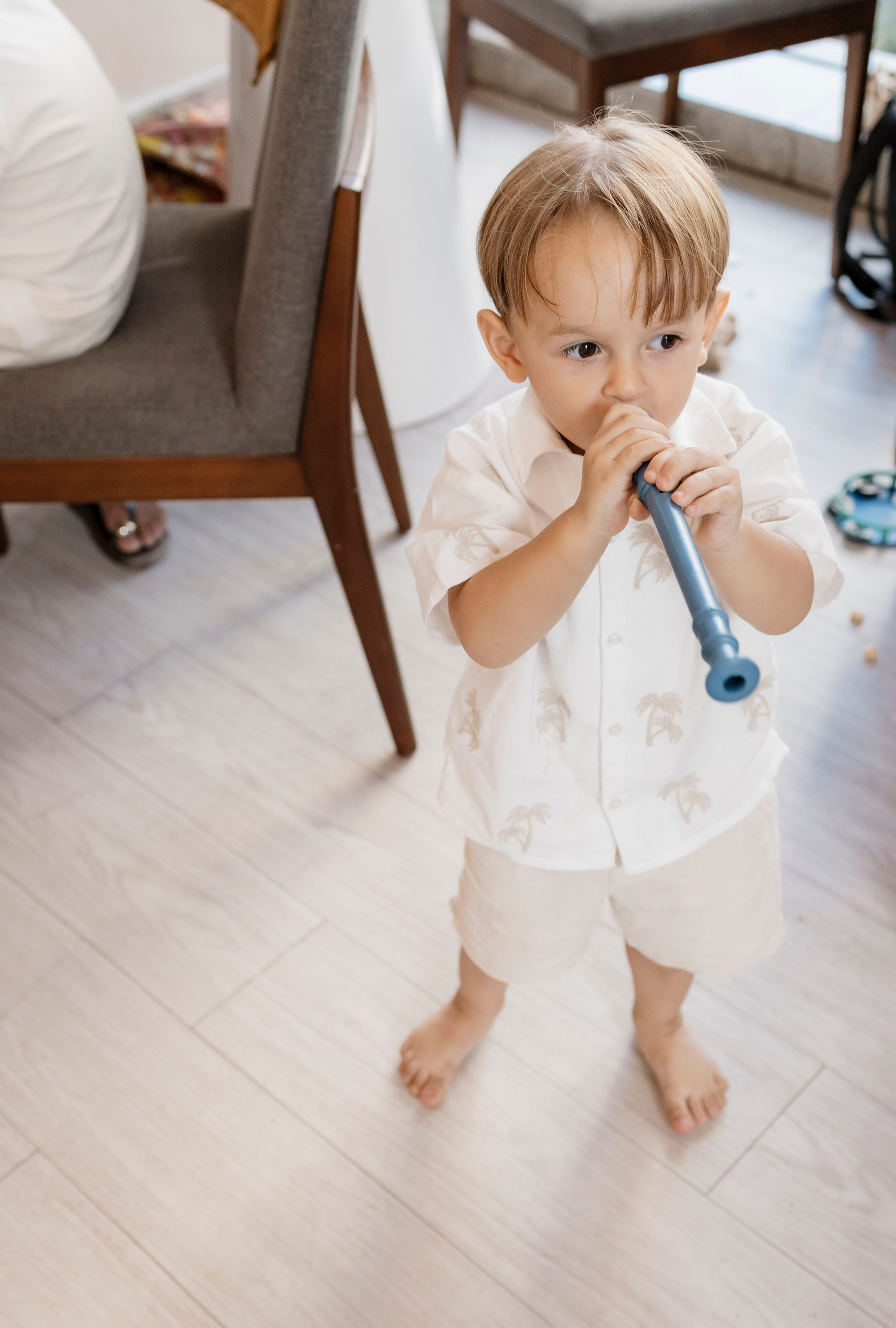 Tudo ali partia do que faz sentido para ele nessa fase: o movimento das bolas, o vento do ventilador, o sol, a curiosidade em descobrir o espaço e as pessoas ao redor. Uma festa pensada no tempo da criança, sem pressa e sem excessos.