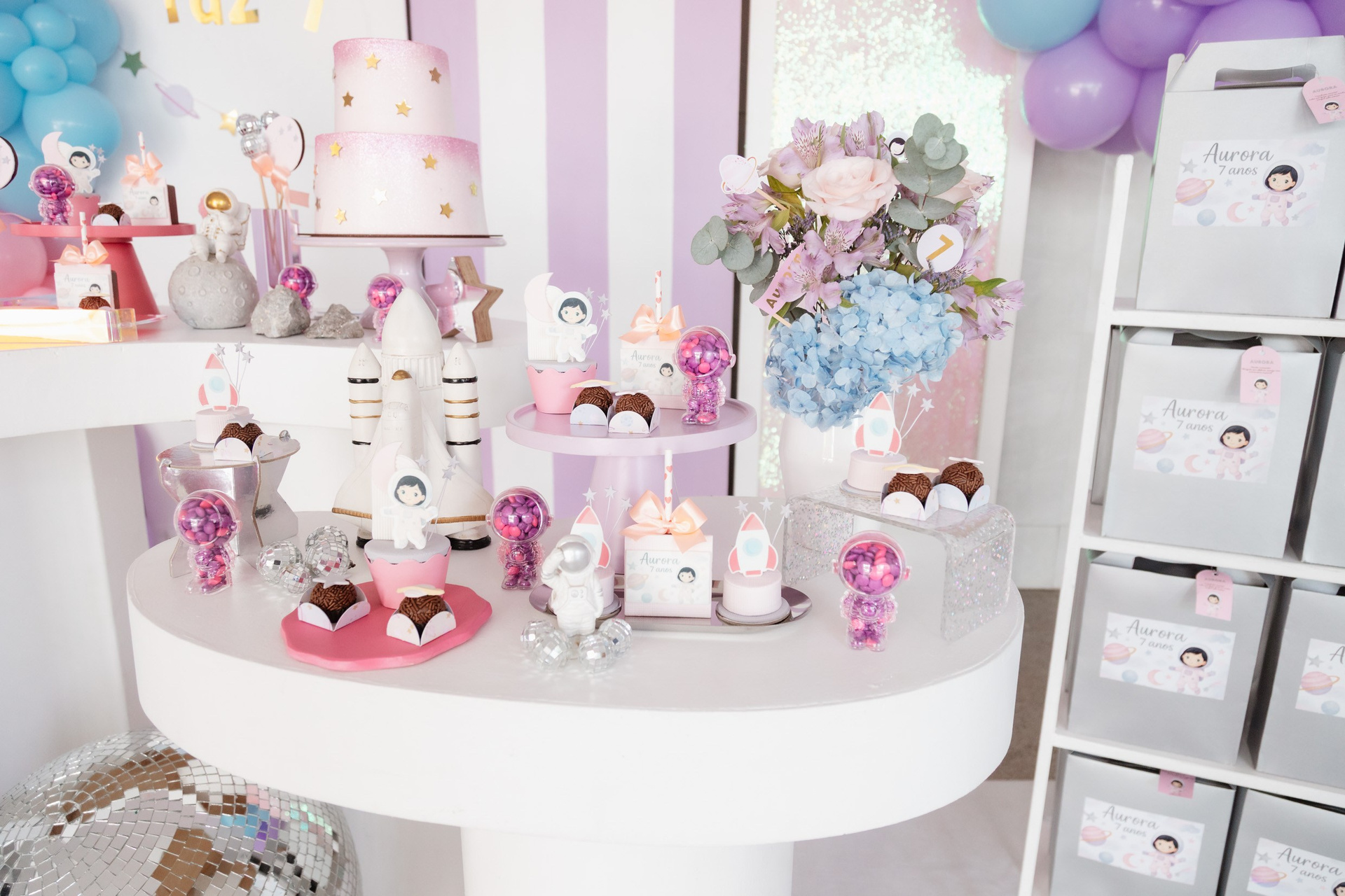 A festa aconteceu em Recife, com tema espaço, com direito a pinhata de nave espacial e uma energia leve, divertida e cheia de momentos bons, cercada pelas pessoas mais queridas da vida da Aurora.
