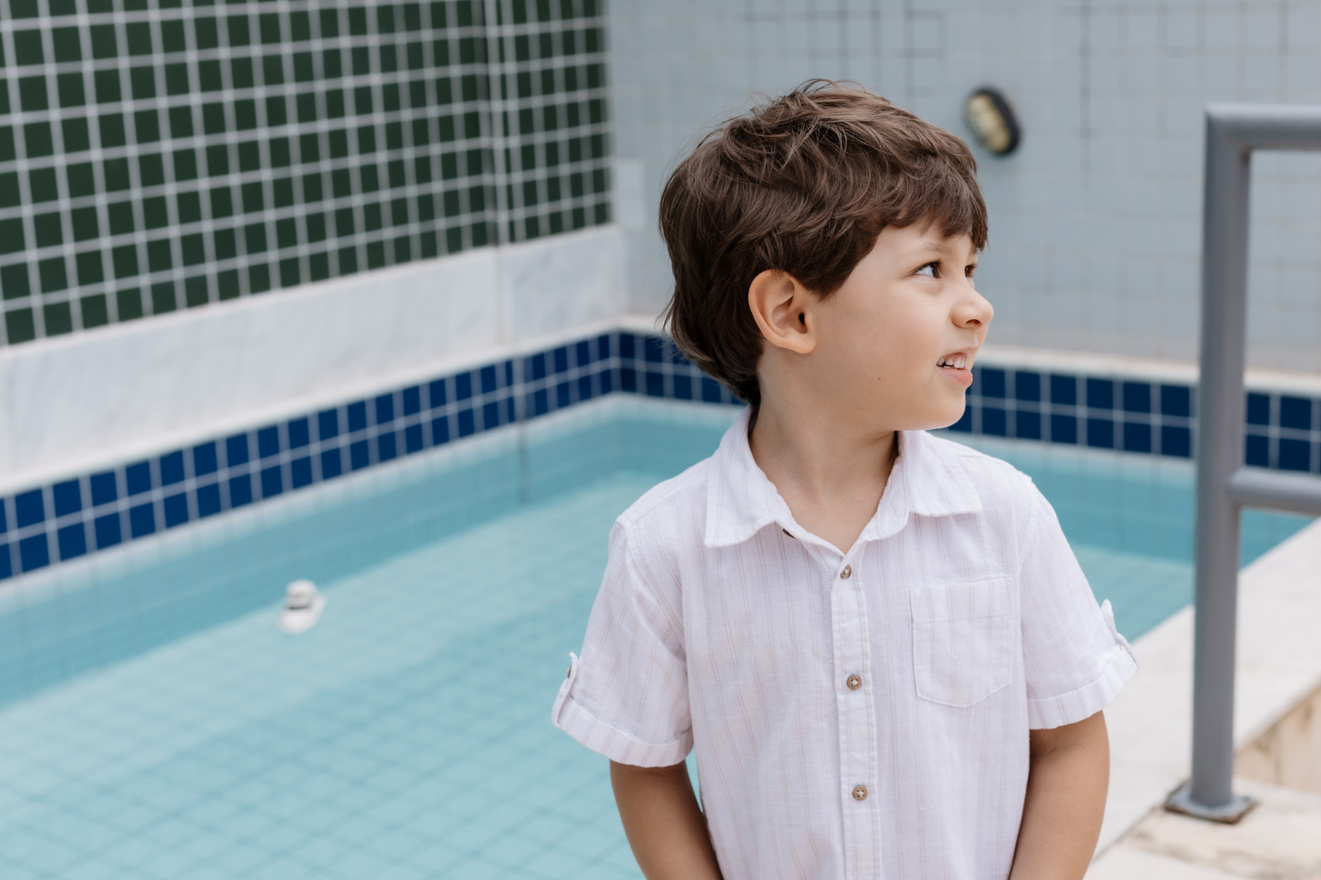 Após a cerimônia, a família seguiu para casa, onde a confraternização aconteceu de forma leve, entre conversas, risadas e um banho de piscina para refrescar o dia quente típico de Recife.
