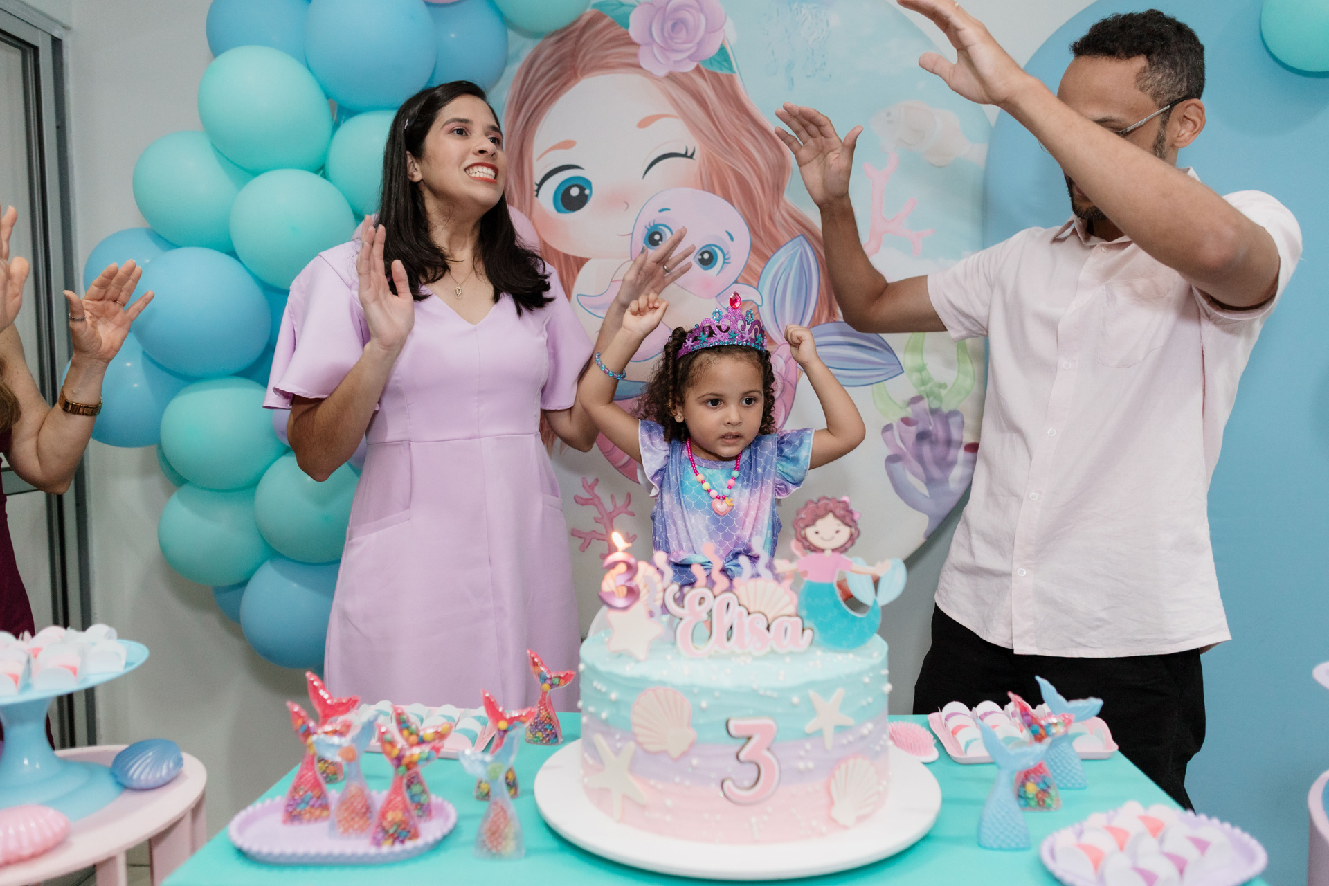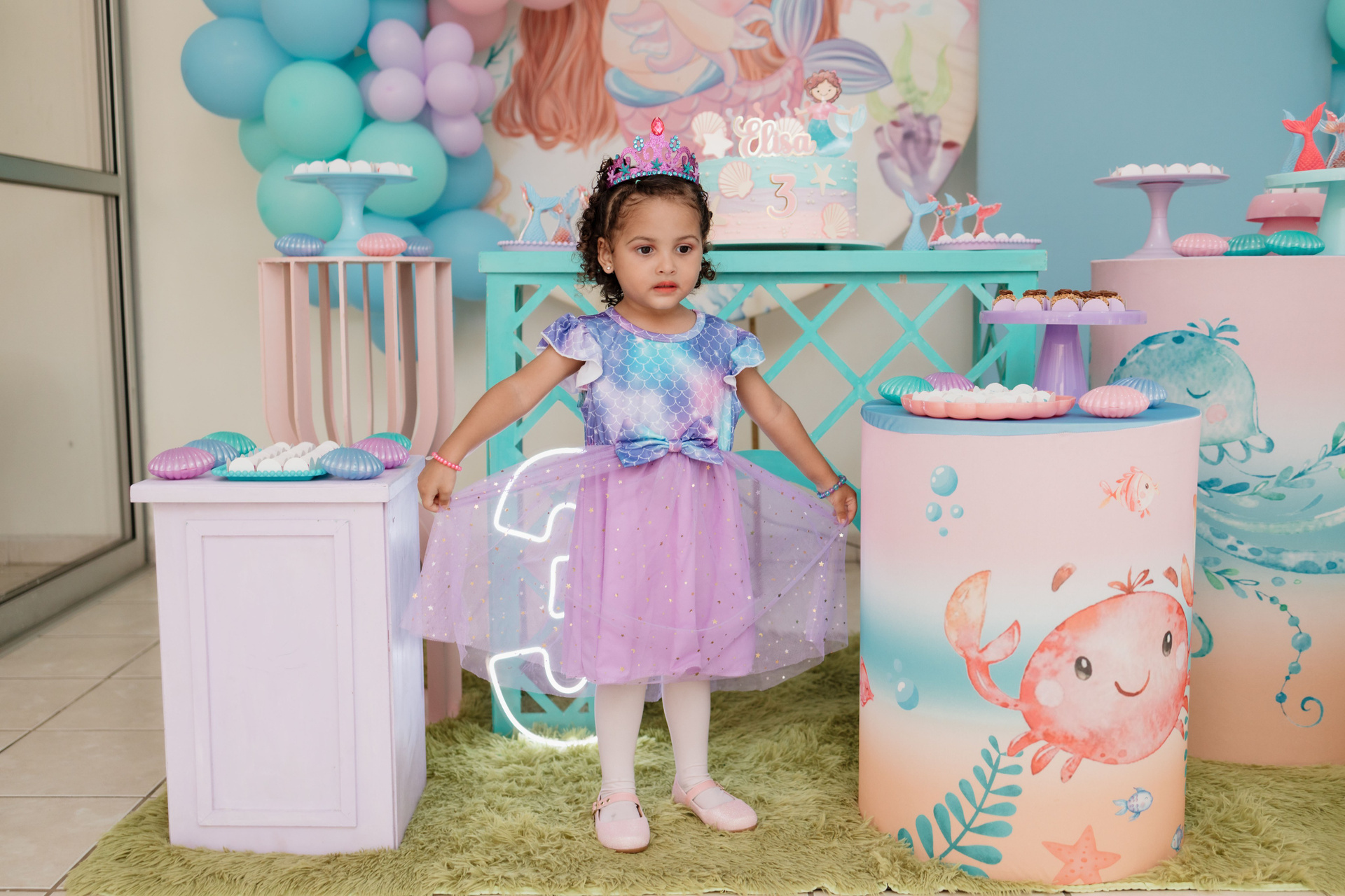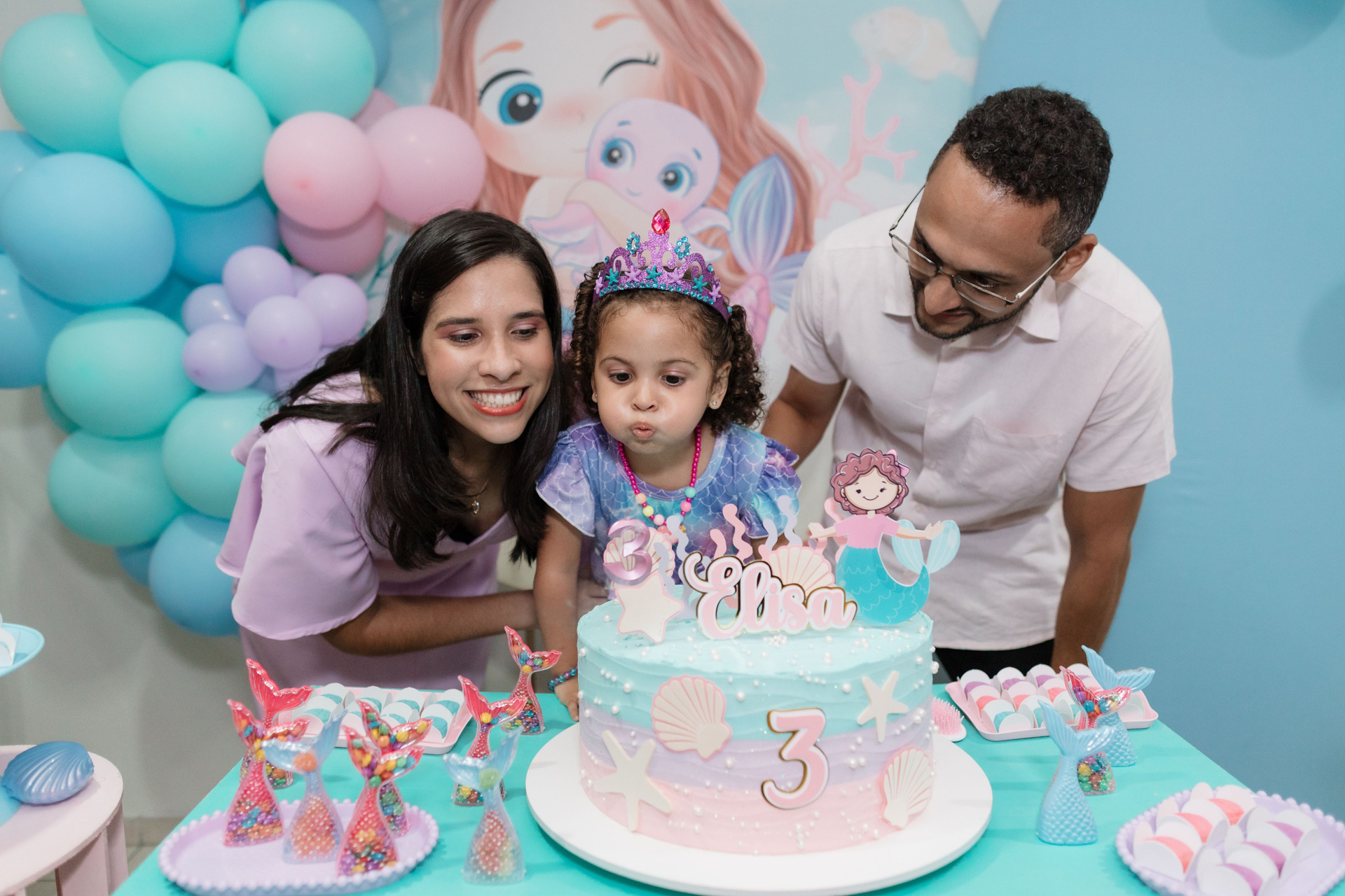 A festa de 3 anos da Elisa teve aquele clima gostoso de quintal de casa, onde as crianças se sentem à vontade para brincar, correr e aproveitar cada pedacinho da tarde. Atendendo ao pedido da aniversariante, a decoração com tema de sereia!
