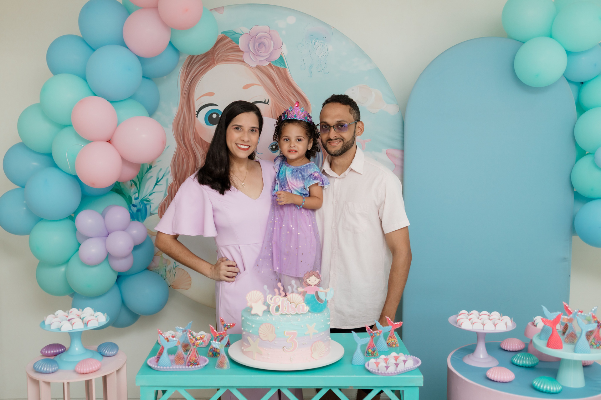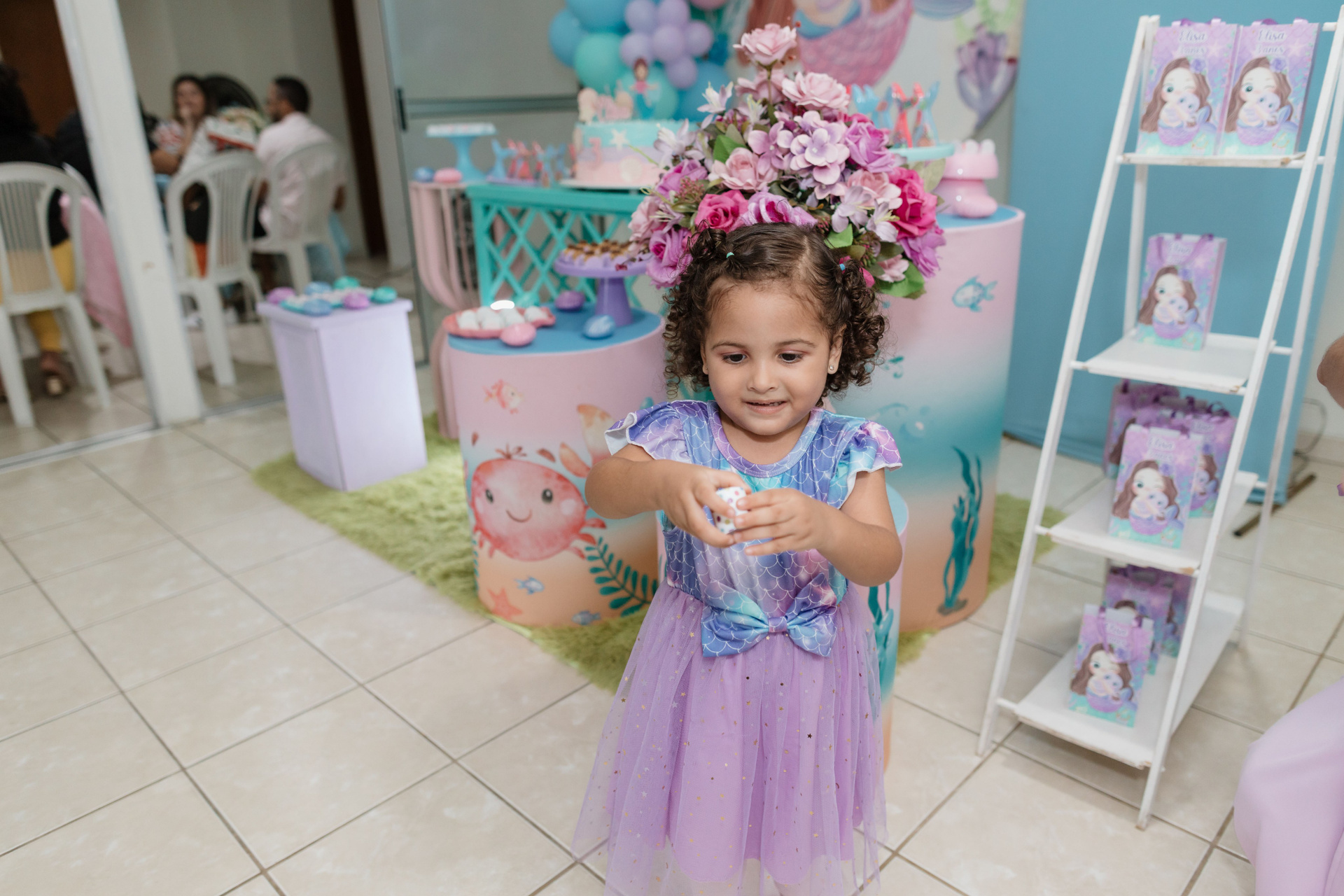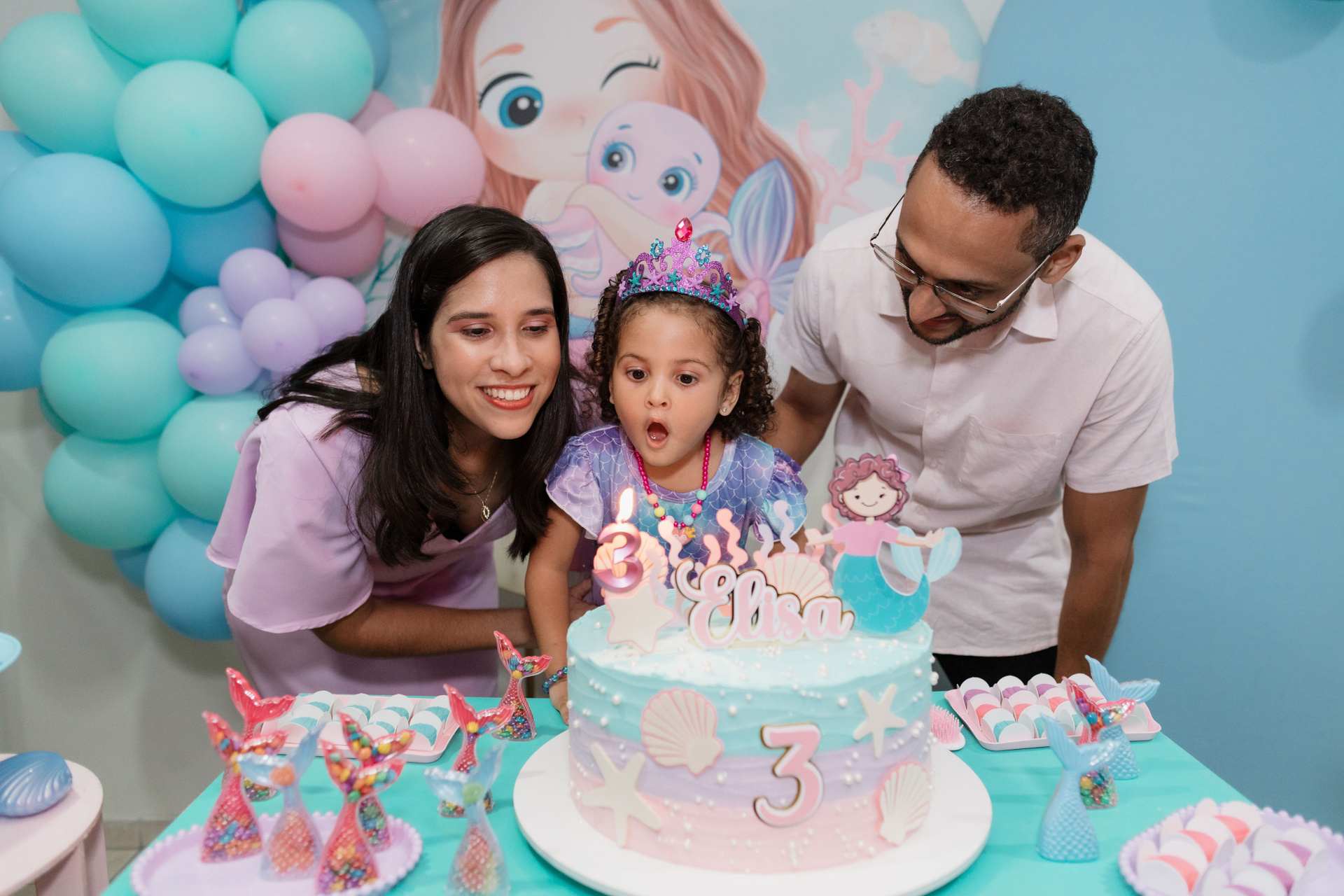 A festa de 3 anos da Elisa teve aquele clima gostoso de quintal de casa, onde as crianças se sentem à vontade para brincar, correr e aproveitar cada pedacinho da tarde. Atendendo ao pedido da aniversariante, a decoração com tema de sereia!