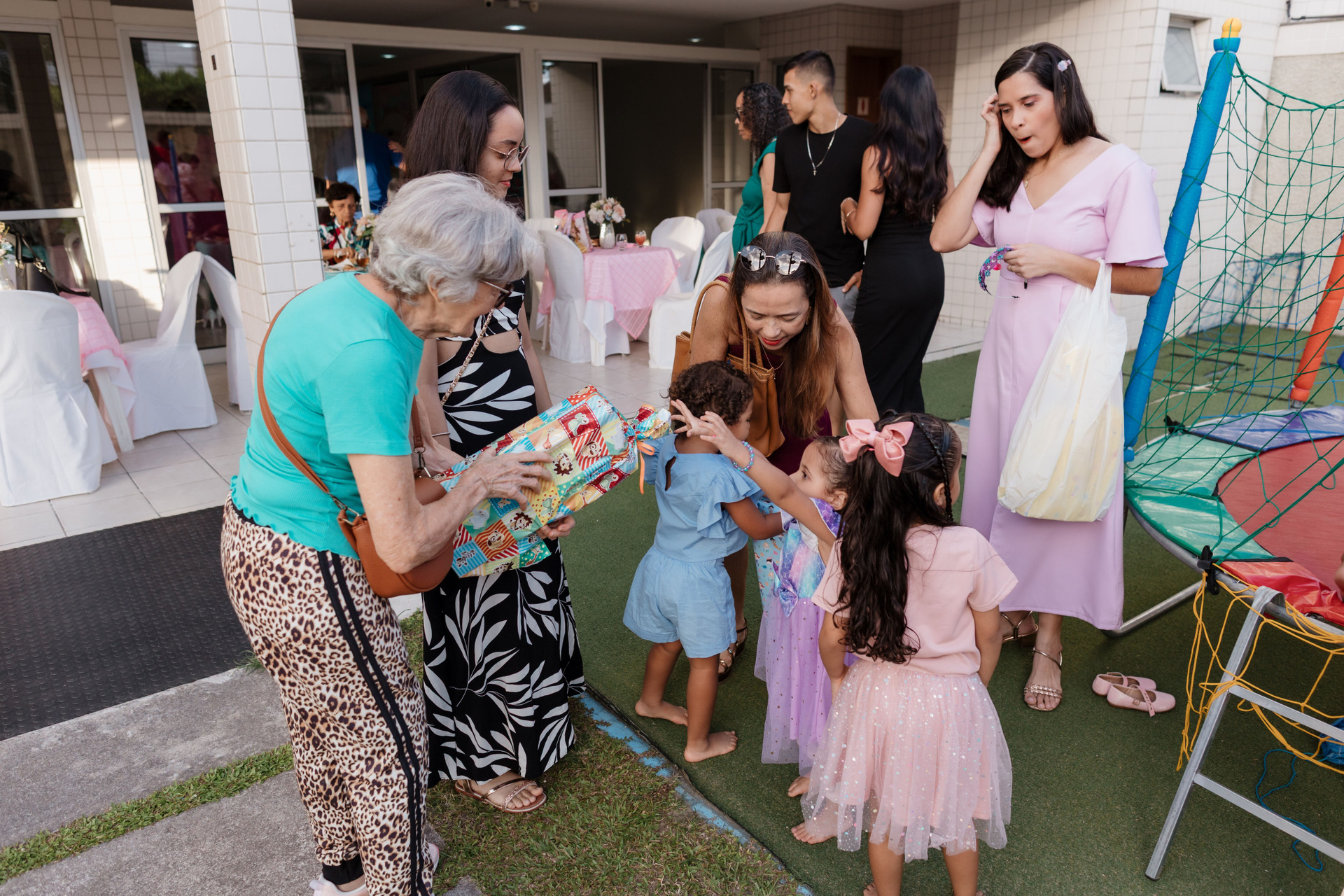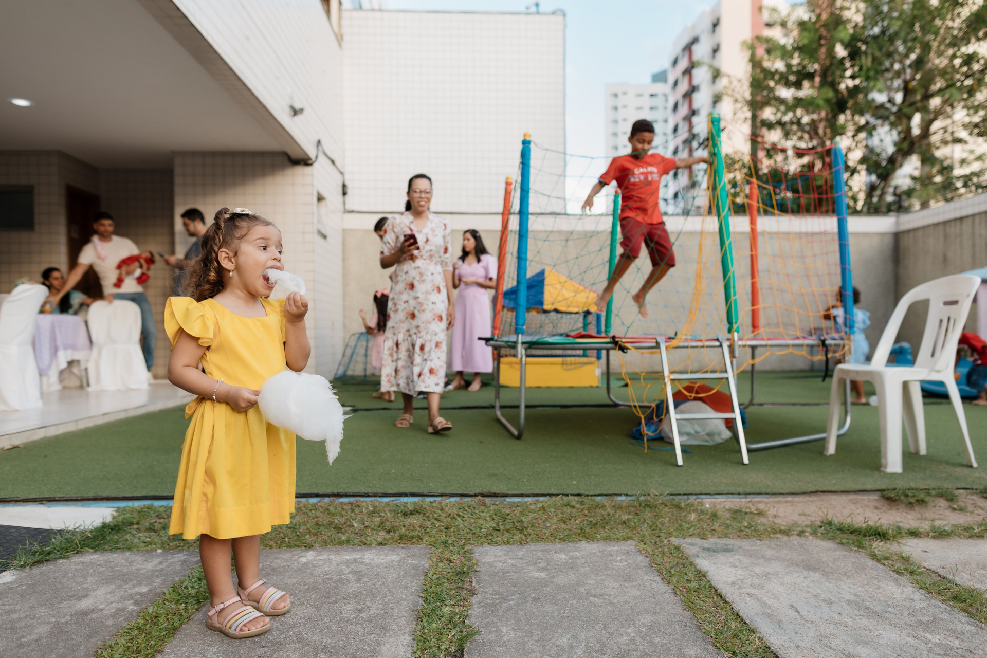 Entre o pula-pula, os presentes, os doces liberados e a companhia da prima-irmã e das amiguinhas, a festa foi acontecendo no tempo das crianças. As fotos acompanham esses momentos com naturalidade, registrando brincadeiras livres, encontros espontâneos e a alegria simples de uma comemoração feita para ser vivida.