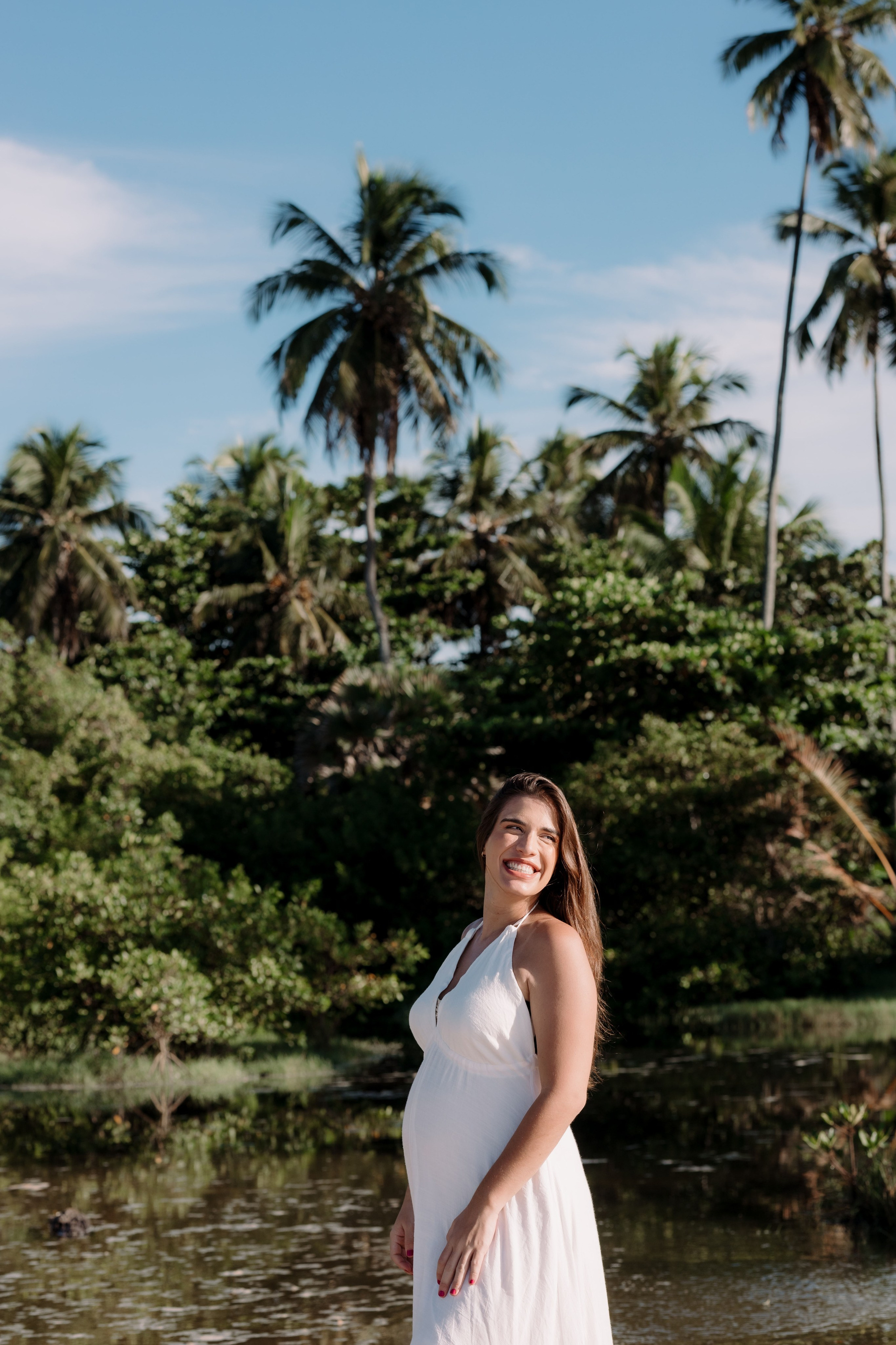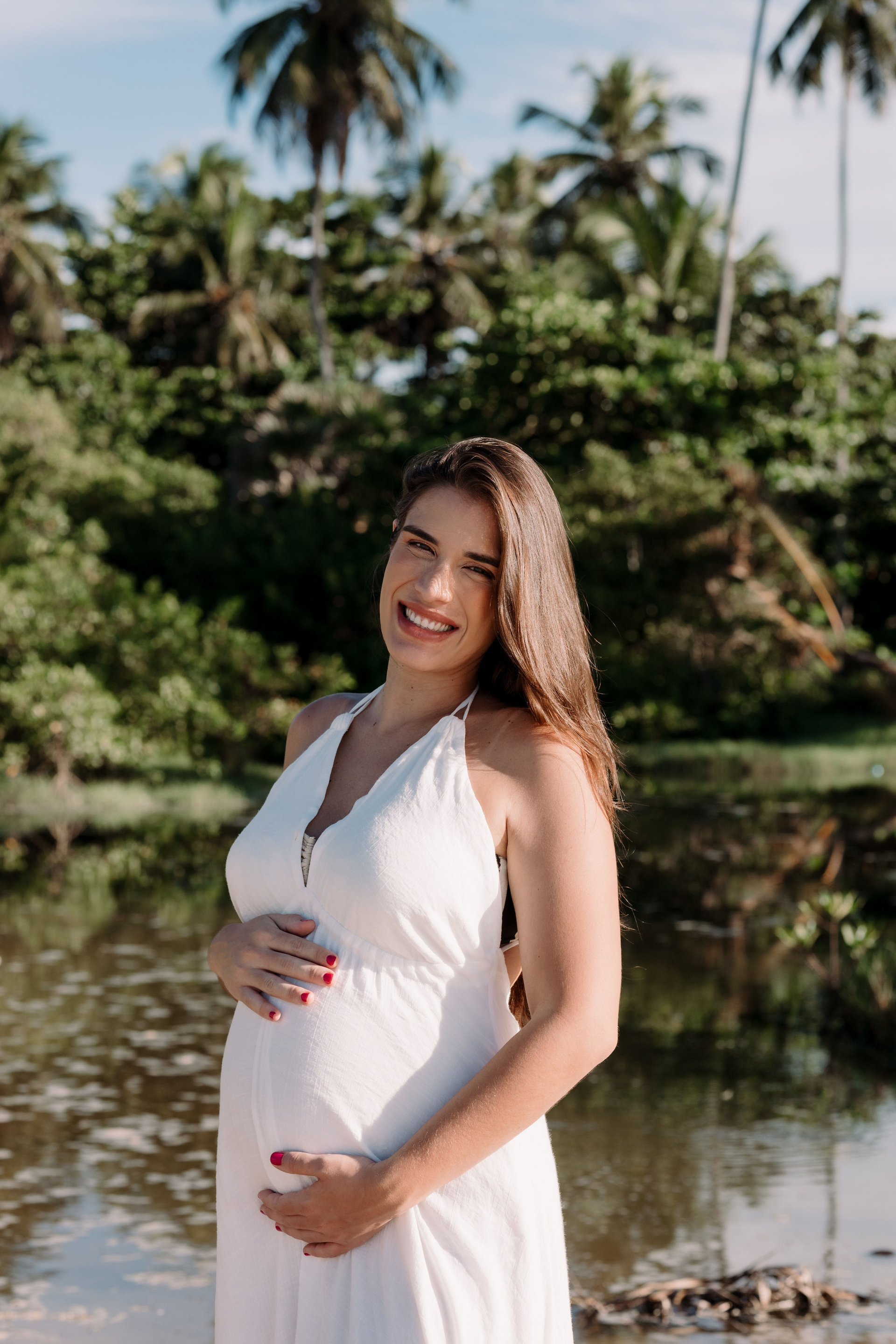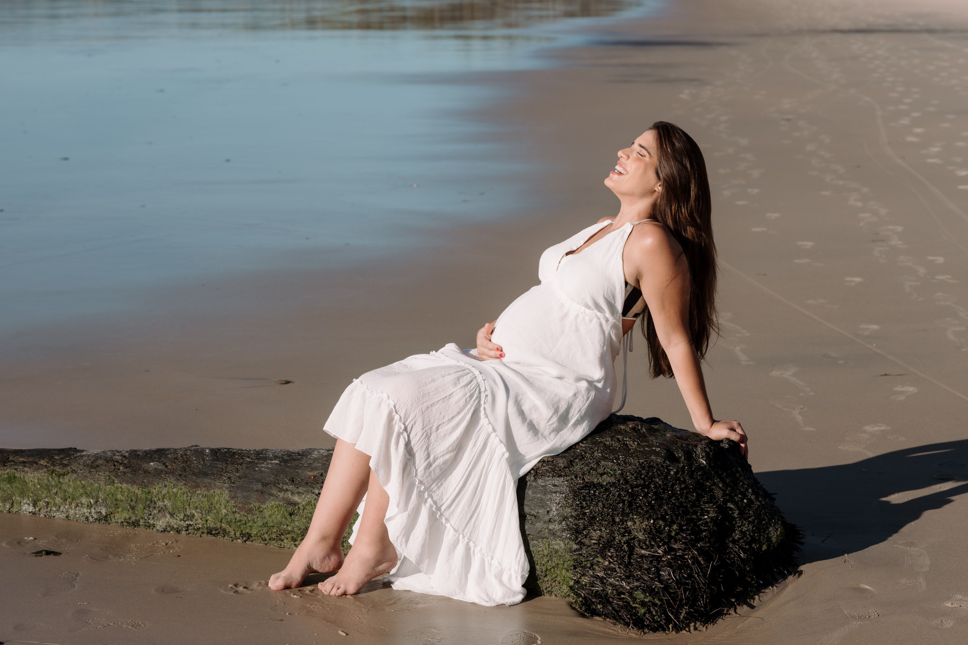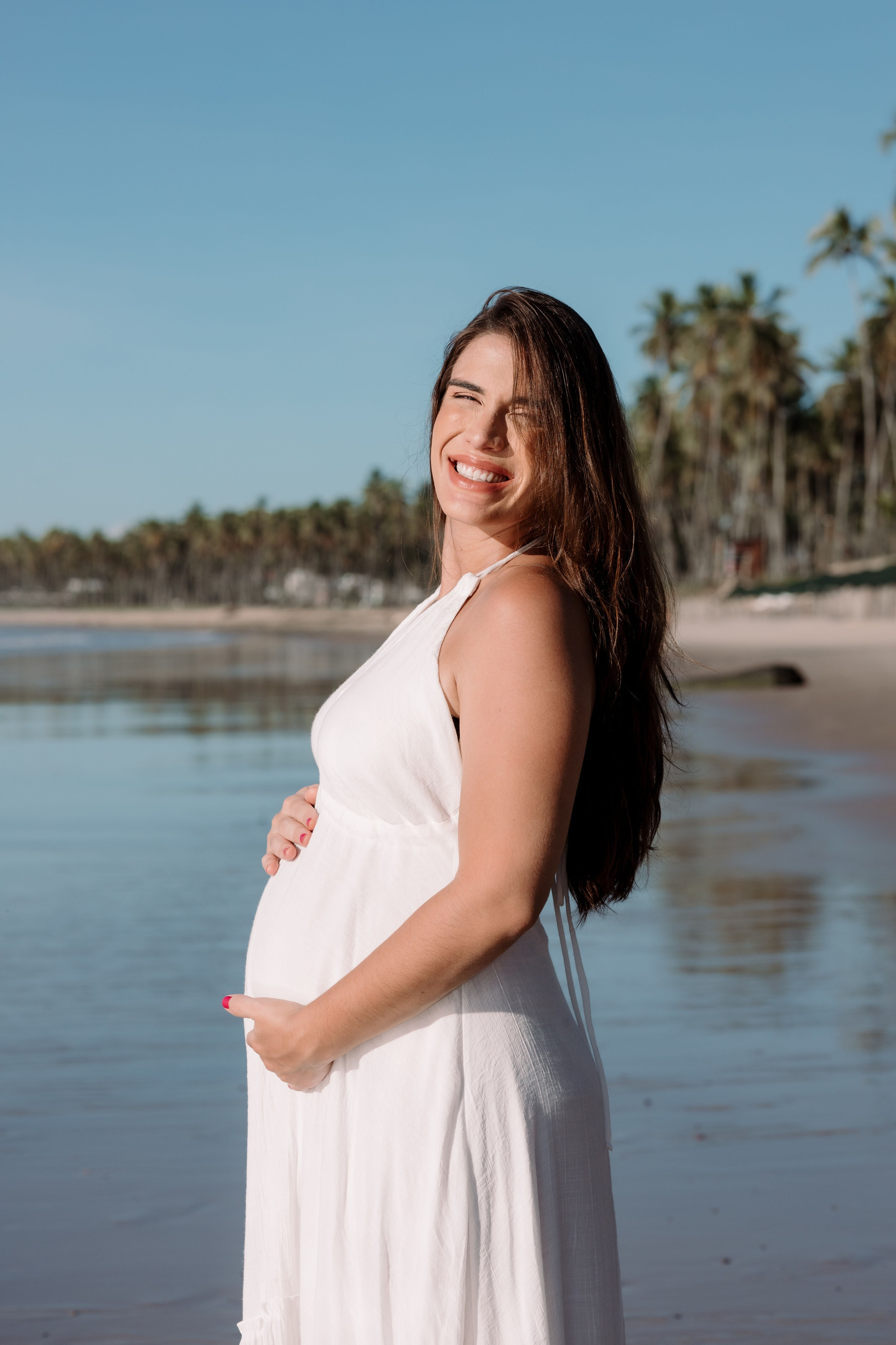 E como não poderia ser diferente, terminou do jeito que a Ingrid mais queria: com banho de mar. Um mergulho para aliviar o calor, fechar o ensaio sorrindo e marcar esse momento de espera de forma leve, real e cheia de presença.