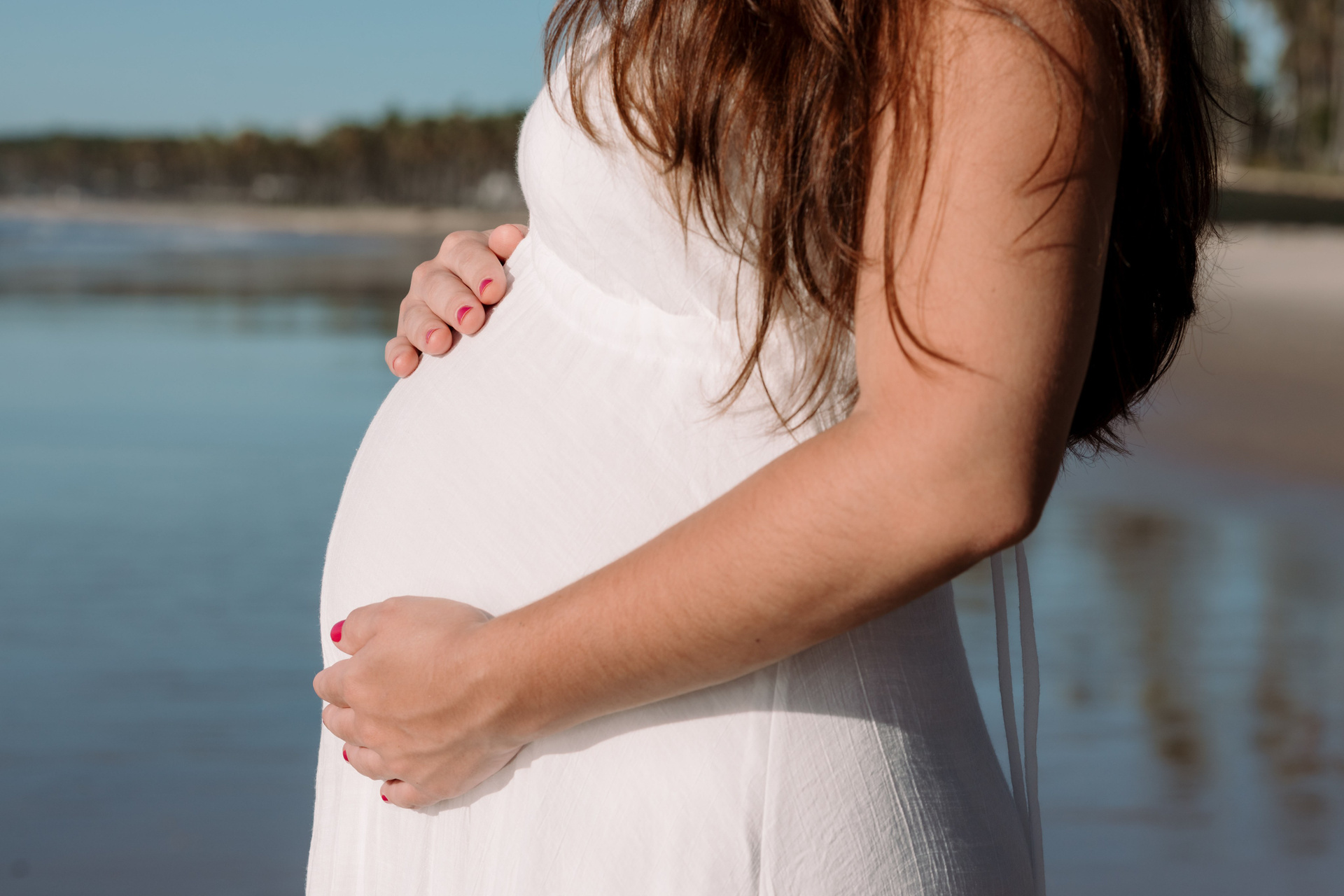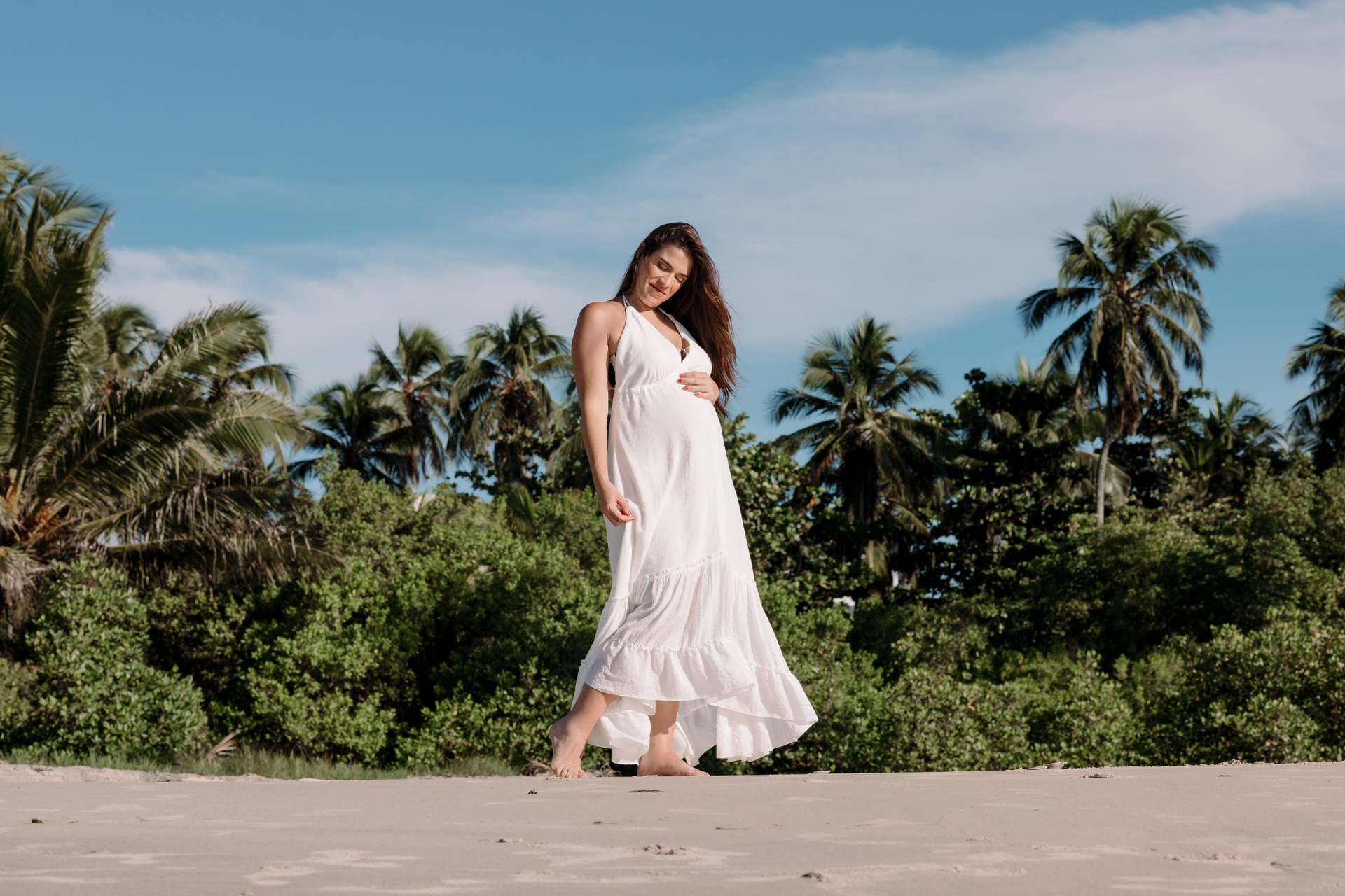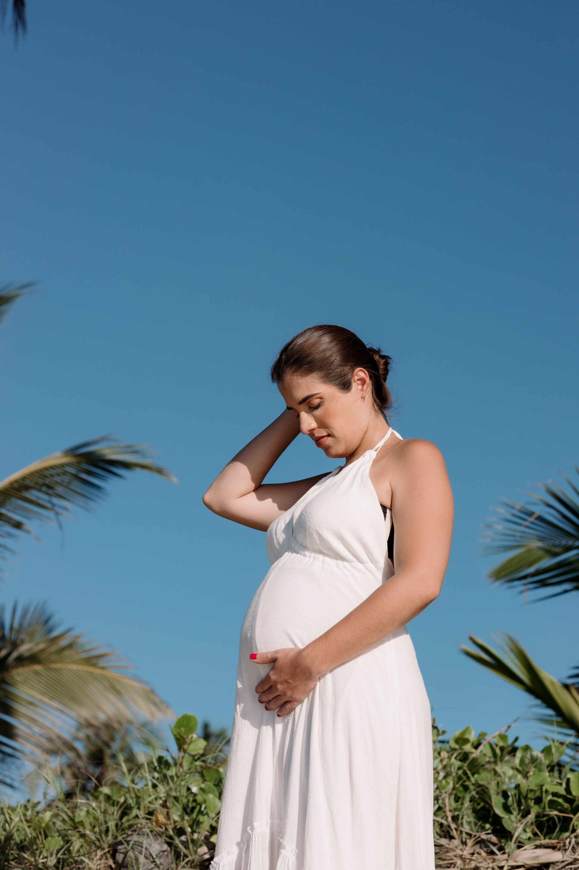 As fotos desse ensaio gestante representam exatamente isso: conexão, tempo desacelerado e a liberdade de viver a gestação do próprio jeito — com o corpo em movimento, os pés na areia e o mar por perto.
