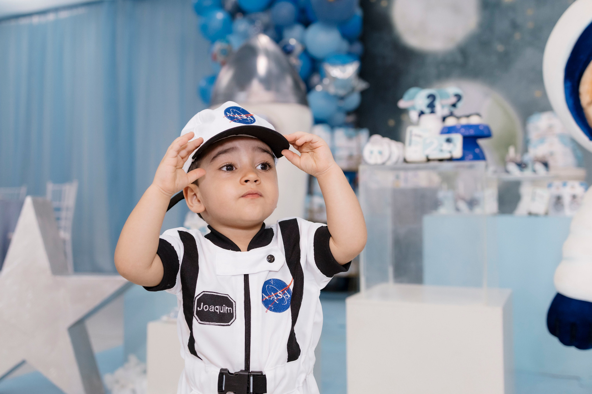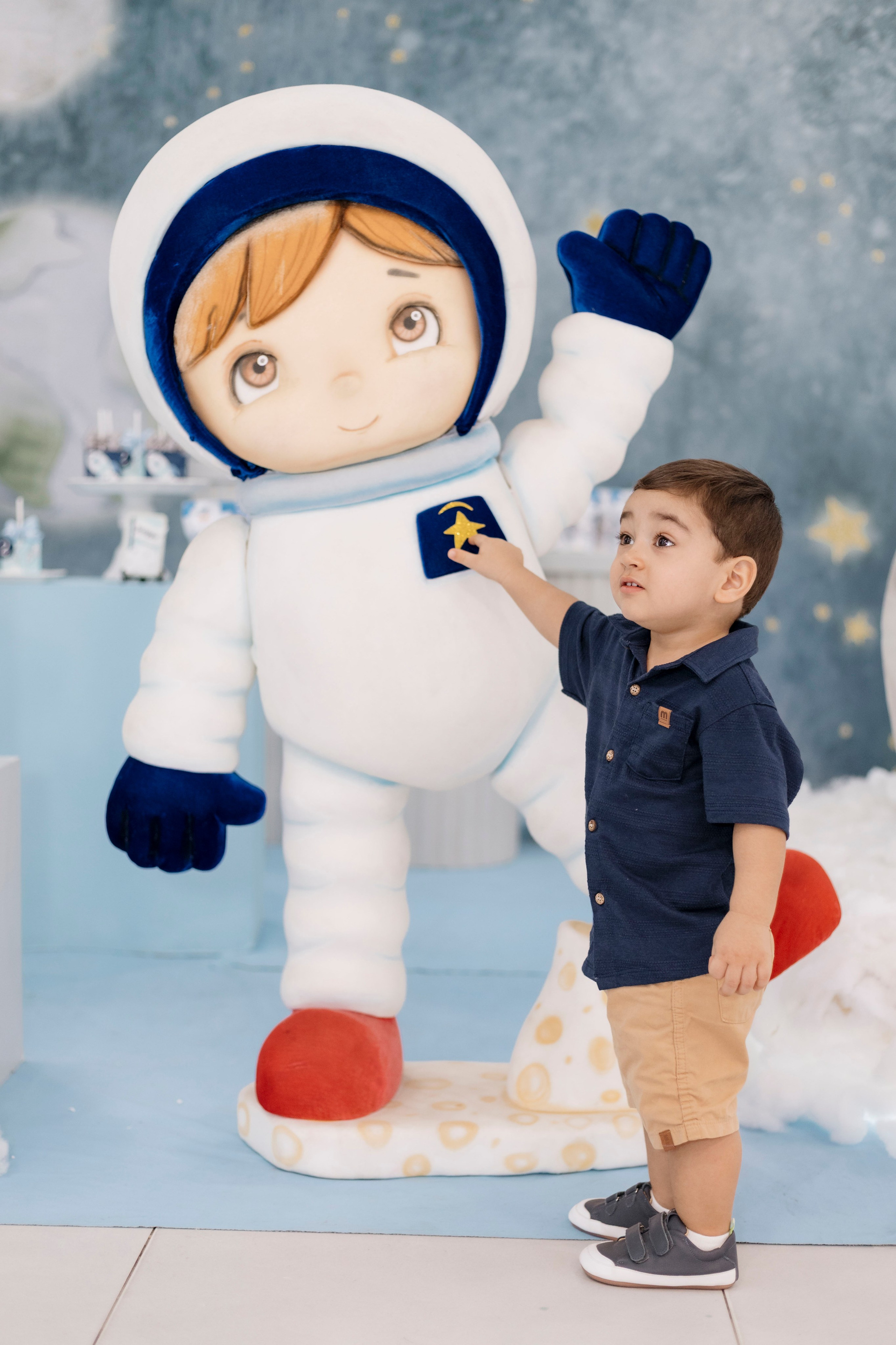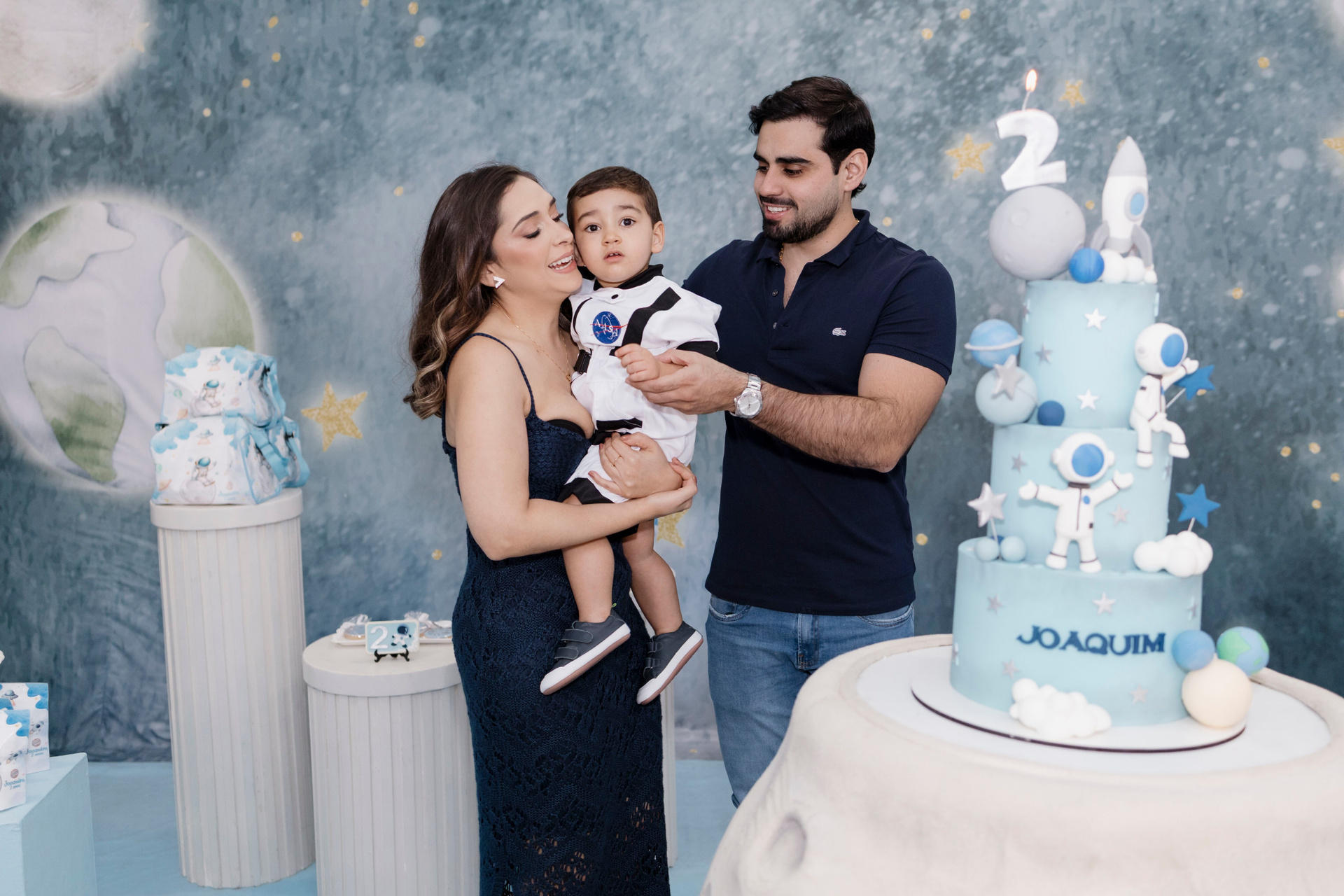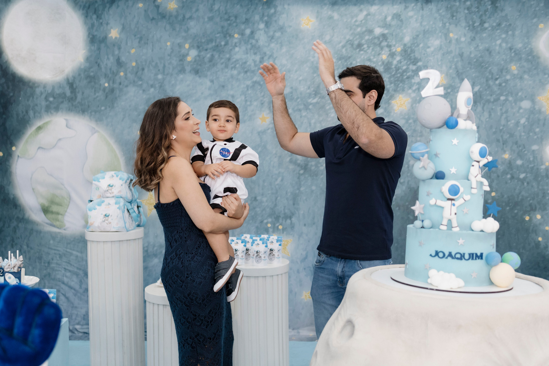 A família escolheu o Nino Buffet, em Recife, para receber amigos e pessoas queridas, em uma festa pensada com carinho em cada detalhe. O tema de astronauta trouxe ainda mais encanto para a celebração. Joaquim se entregou por completo a cada momento, curioso, atento e feliz com tudo ao seu redor.