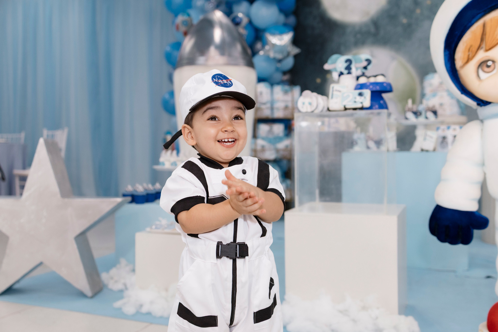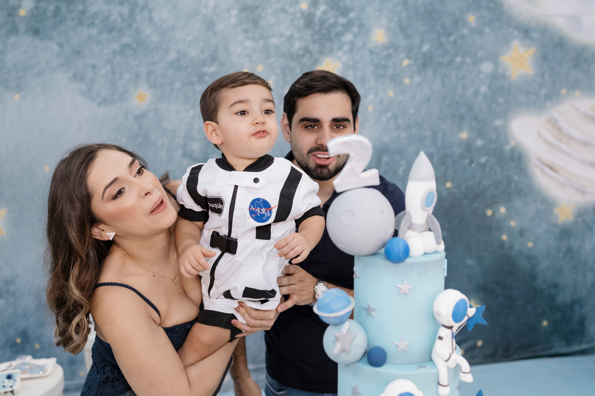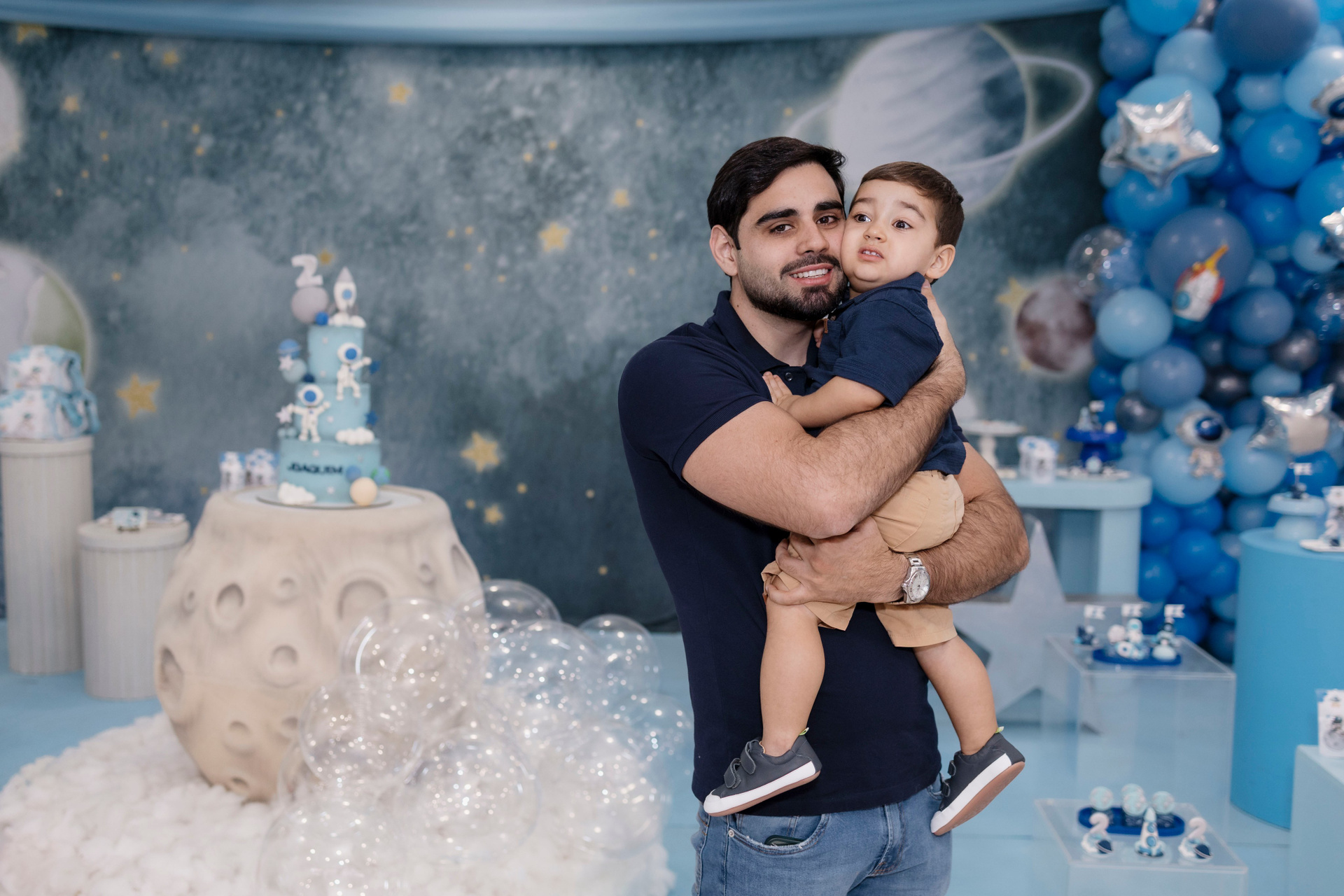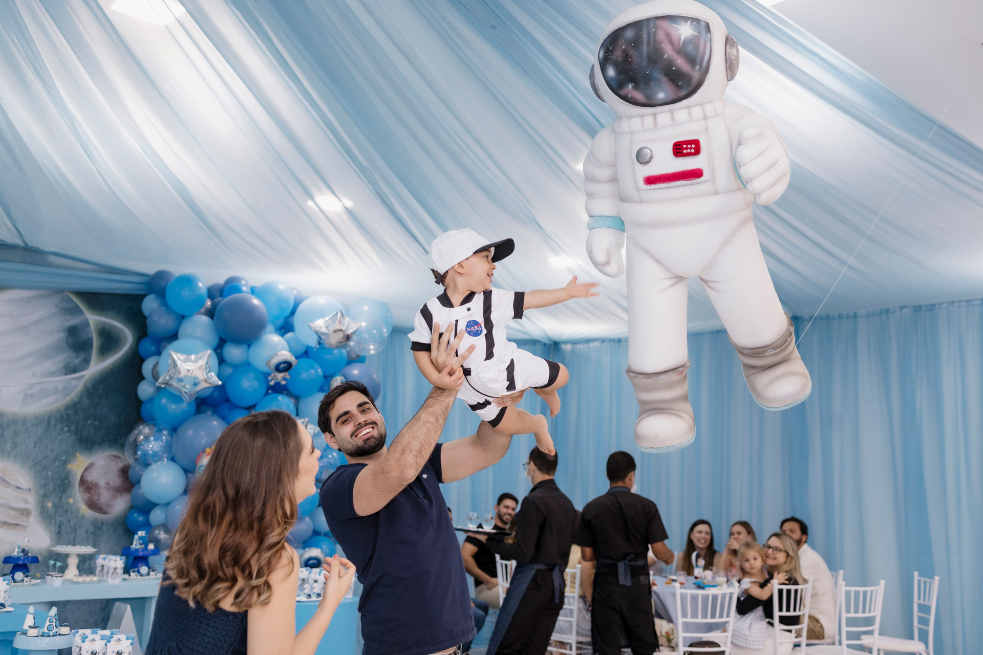 A família escolheu o Nino Buffet, em Recife, para receber amigos e pessoas queridas, em uma festa pensada com carinho em cada detalhe. O tema de astronauta trouxe ainda mais encanto para a celebração. Joaquim se entregou por completo a cada momento, curioso, atento e feliz com tudo ao seu redor.