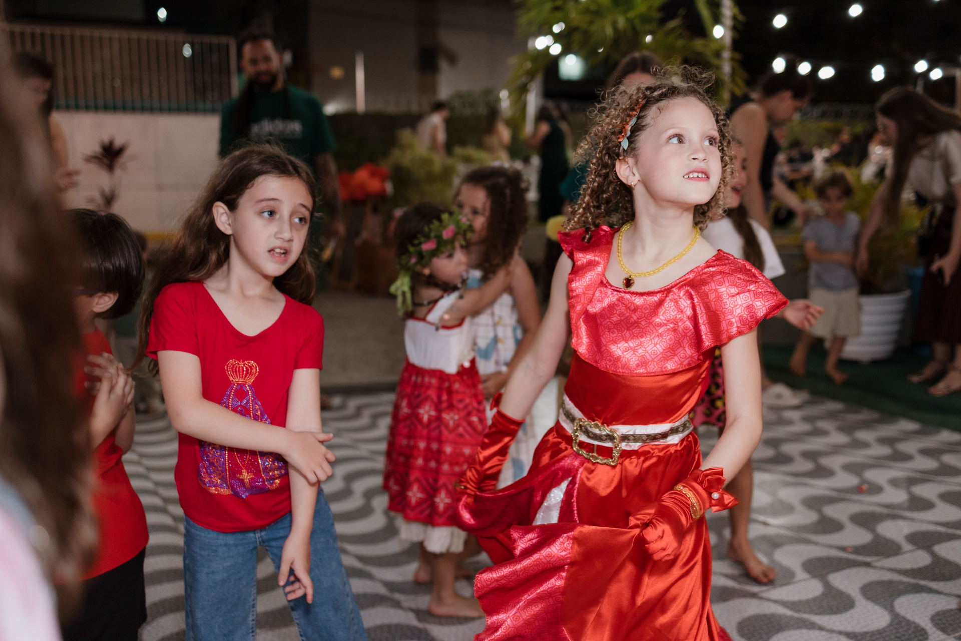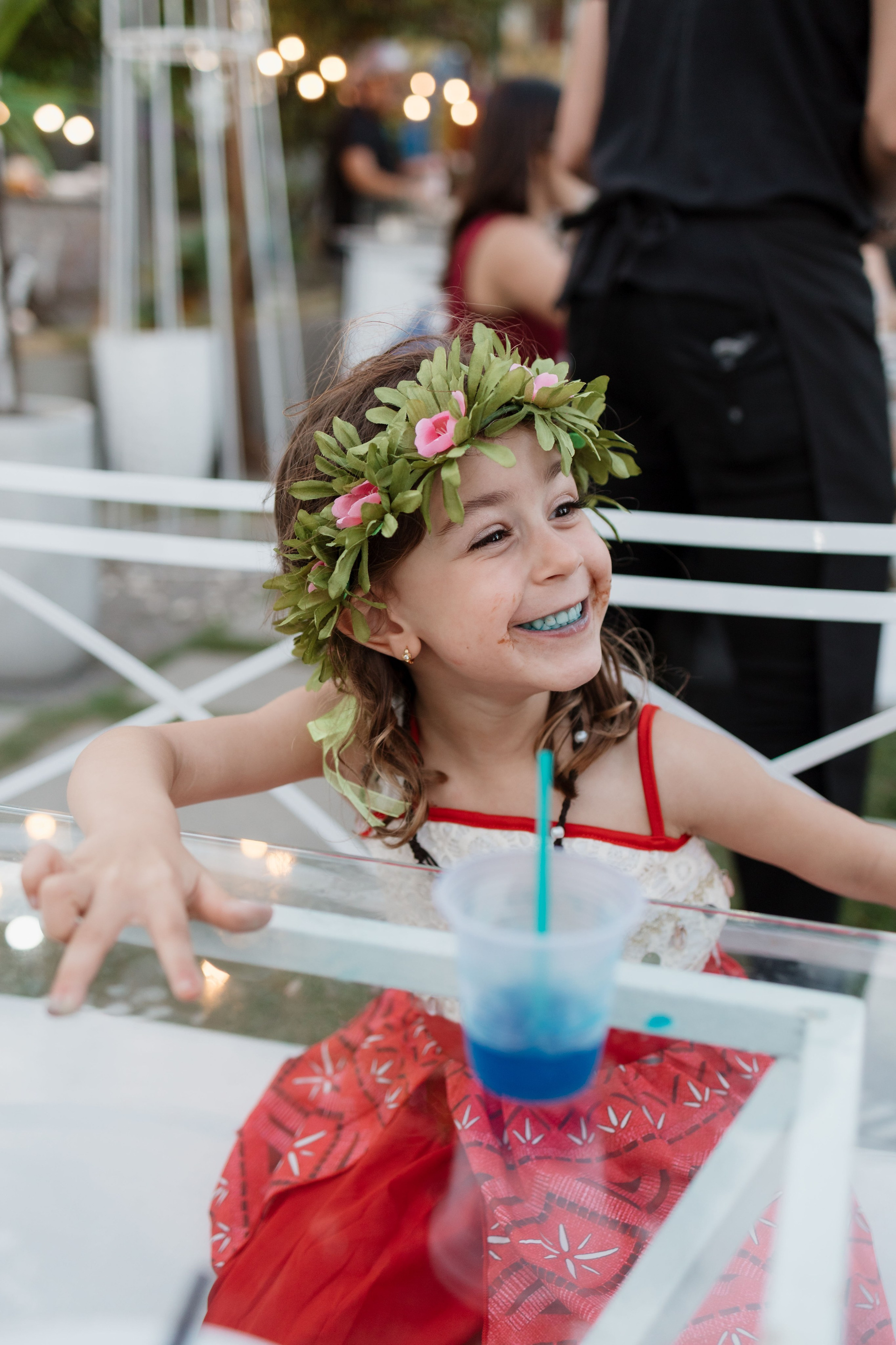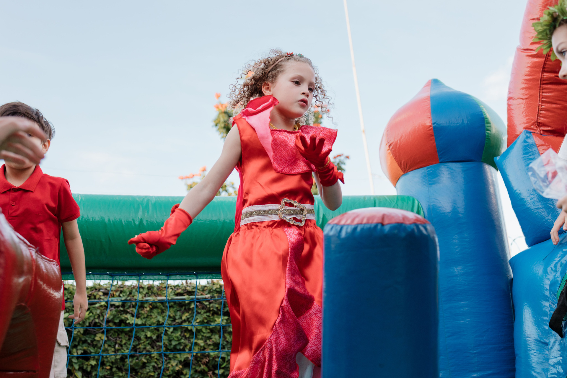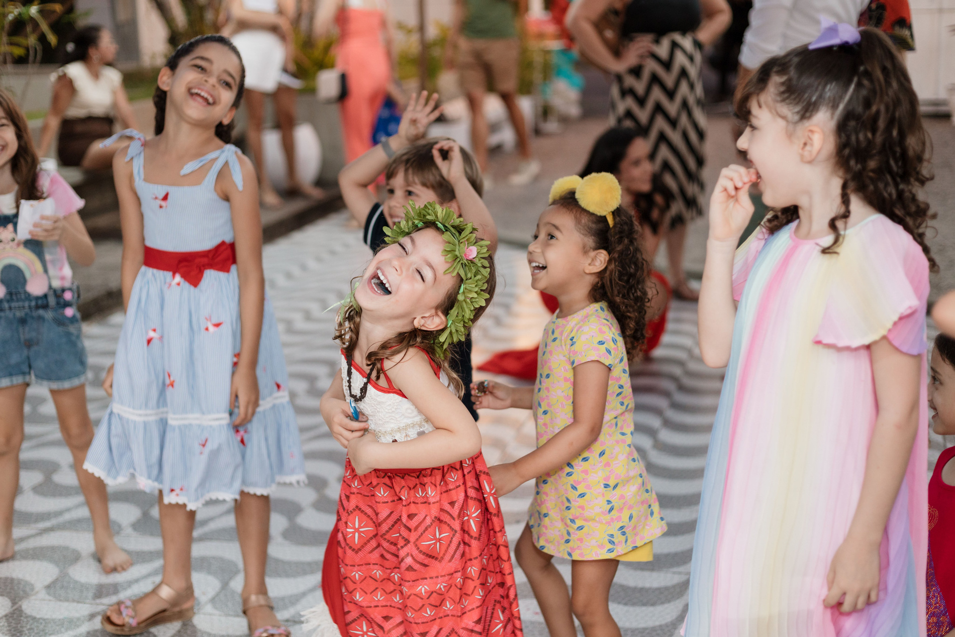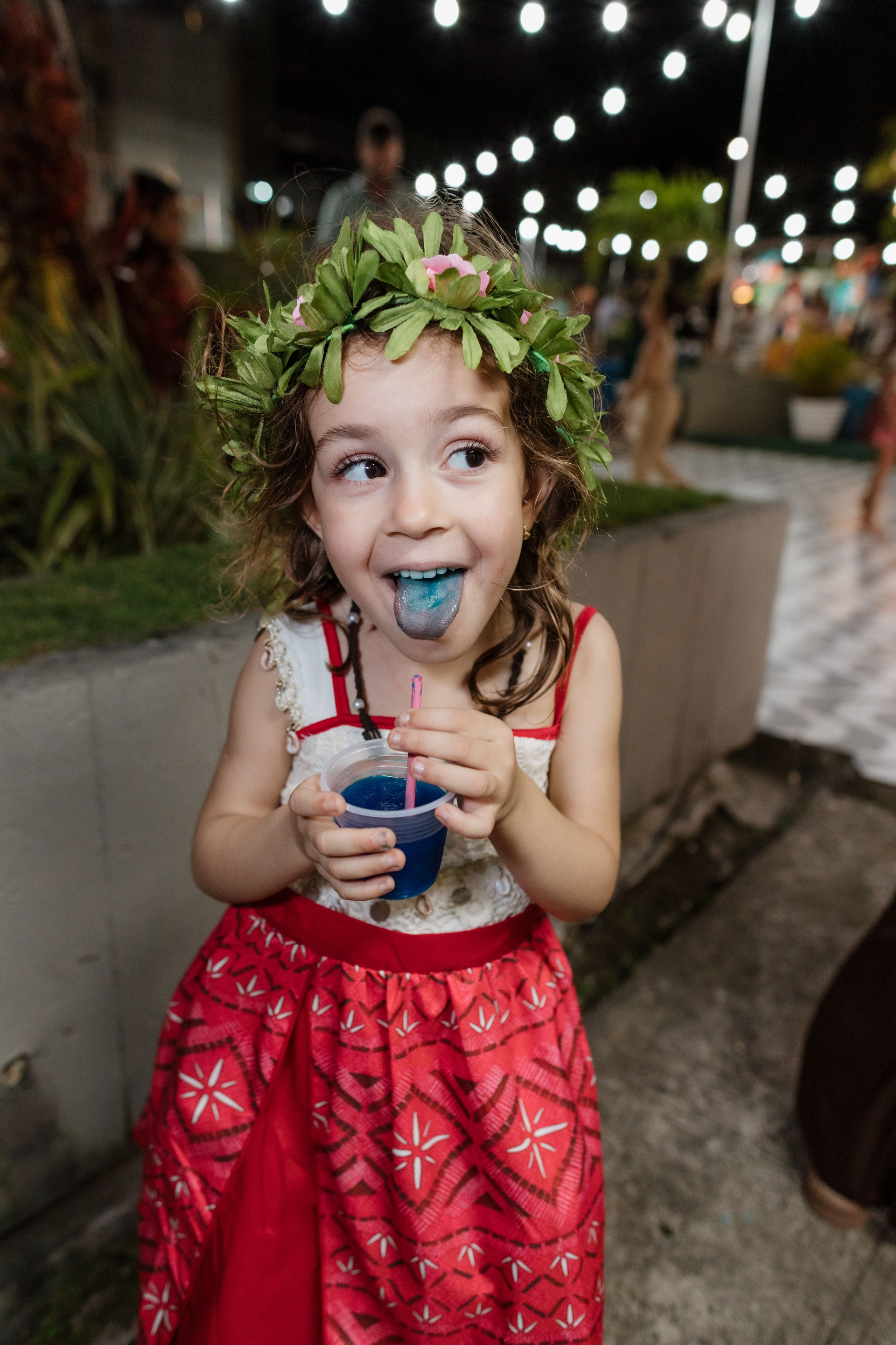 Entre risadas, comidinhas e brincadeiras ao ar livre, a tarde foi acontecendo de forma leve. Para Beatriz, o tema Moana trouxe movimento e cor; para Maria, Elena de Avalor apareceu nos detalhes, respeitando a personalidade de cada uma.